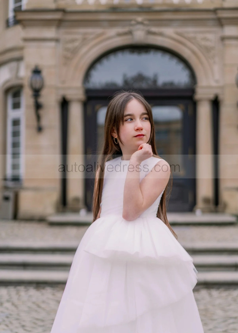 White Pleated Tulle Asymmetrical Fashion Flower Girl Dress