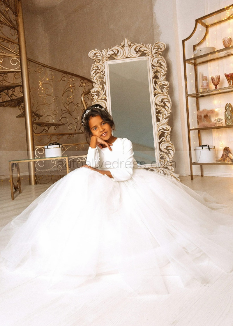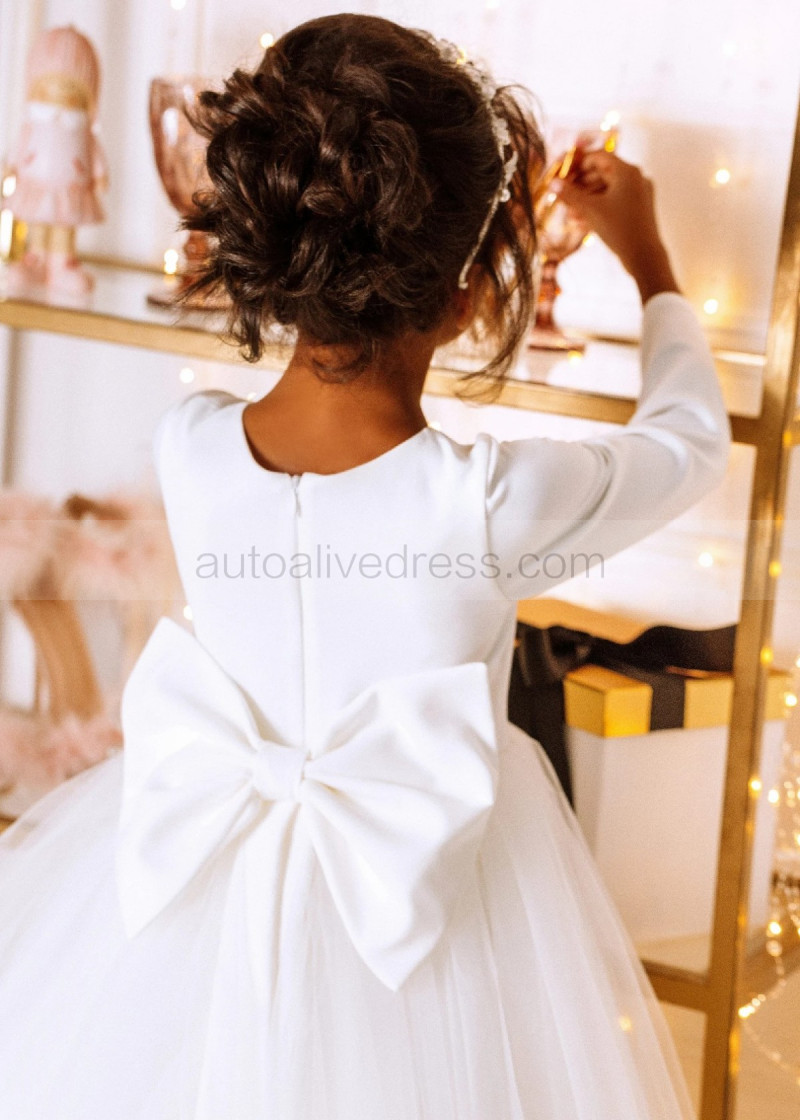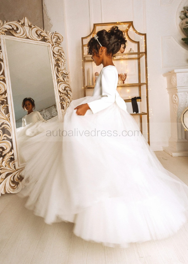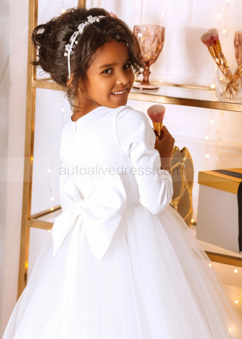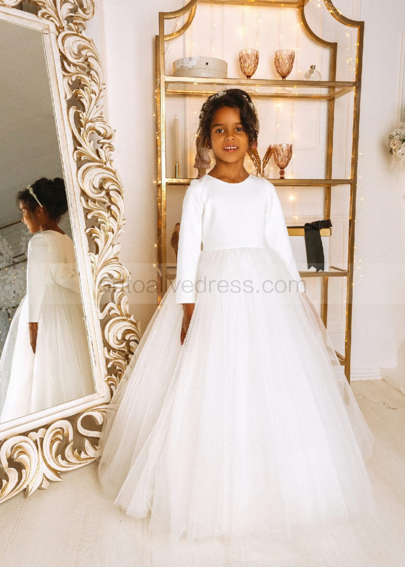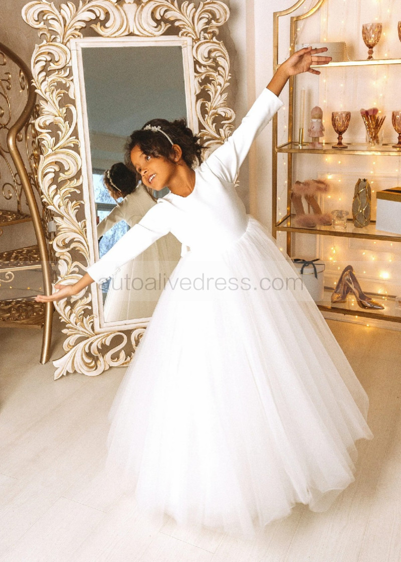 White Satin Tulle Minimalist Flower Girl Dress