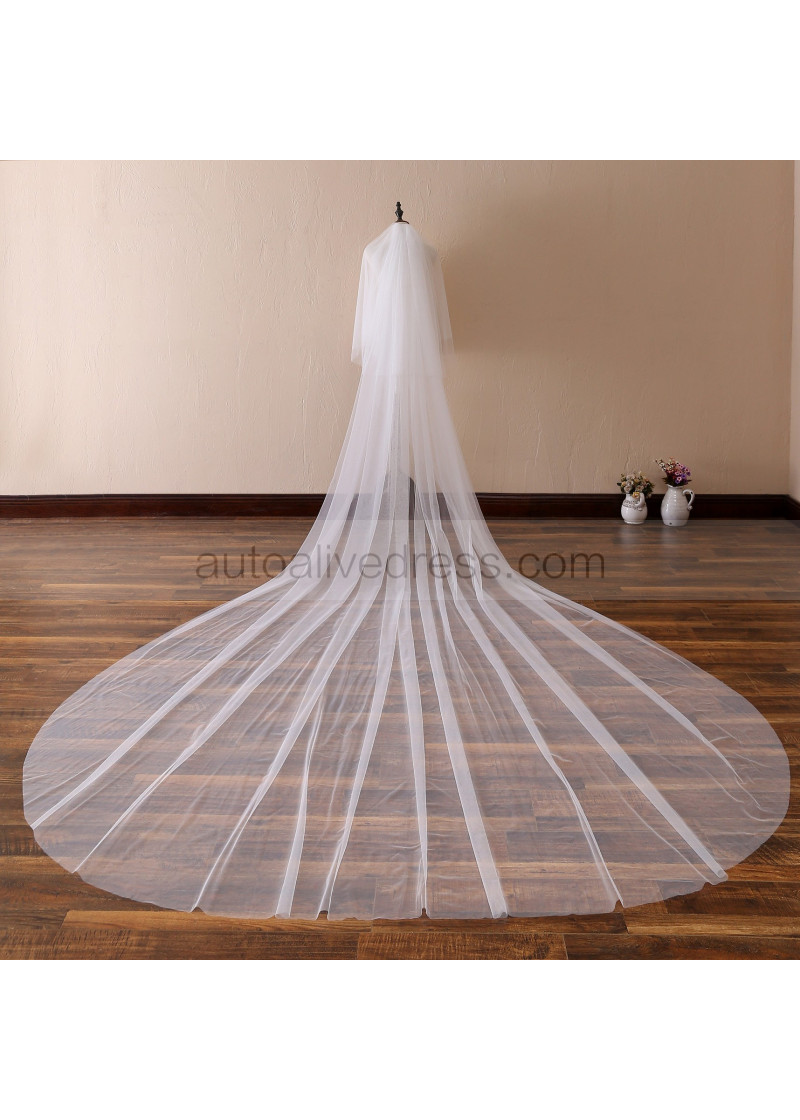 White Simple Tulle Wedding Veil Plain Edge Two-tier Bridal Veil