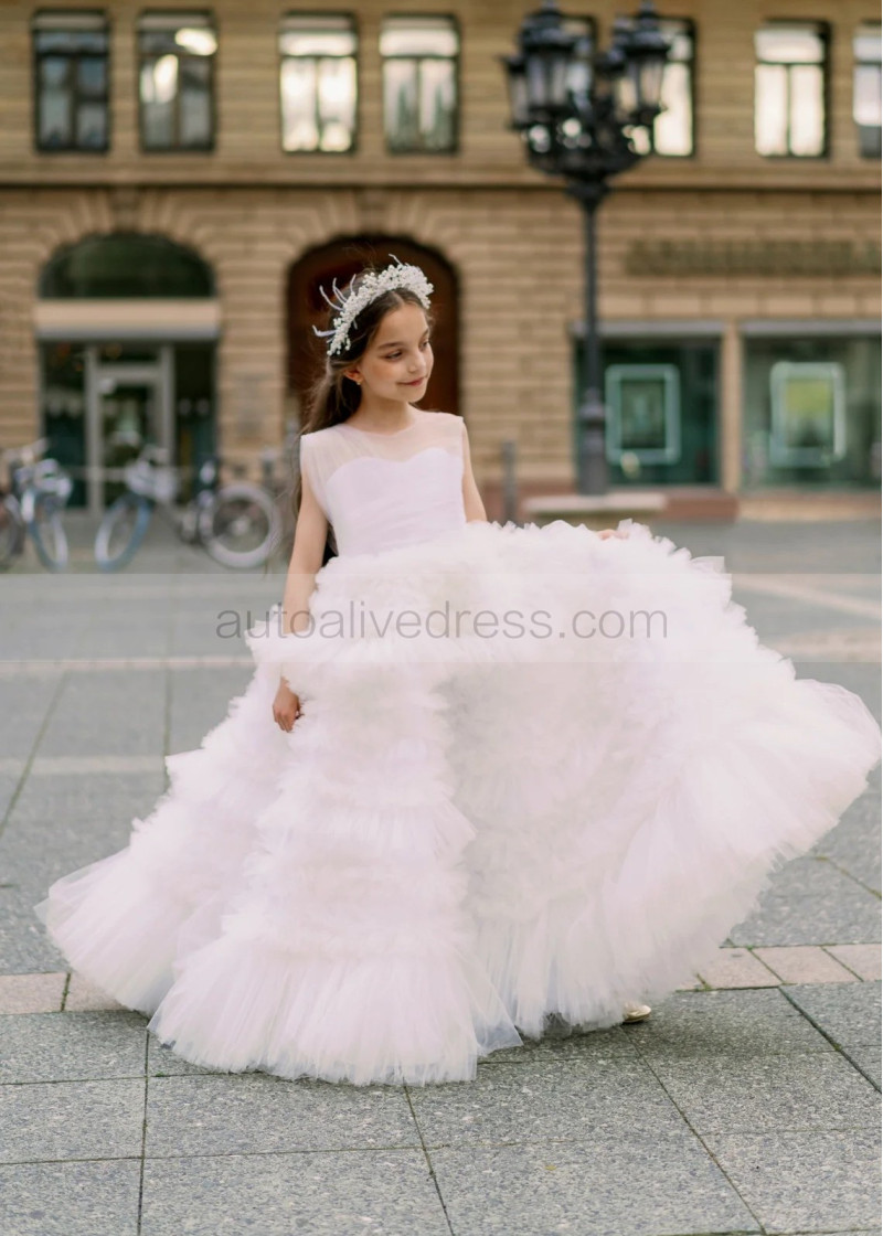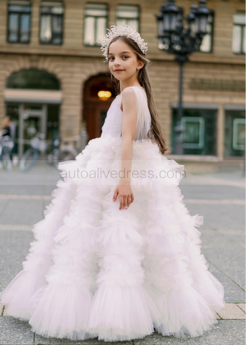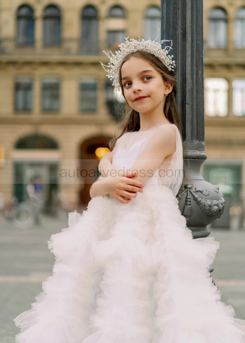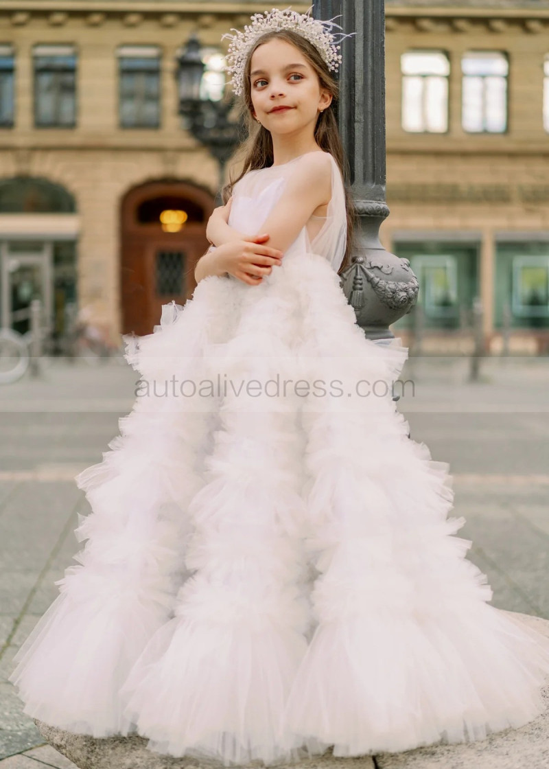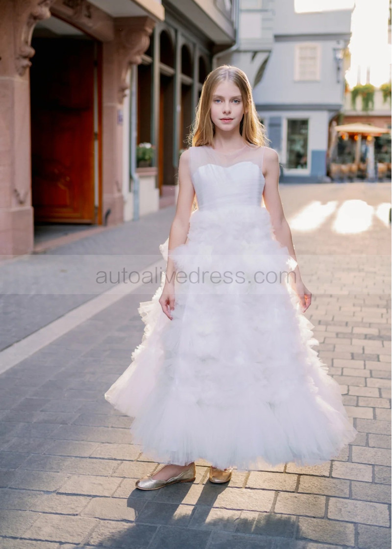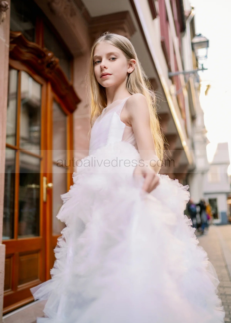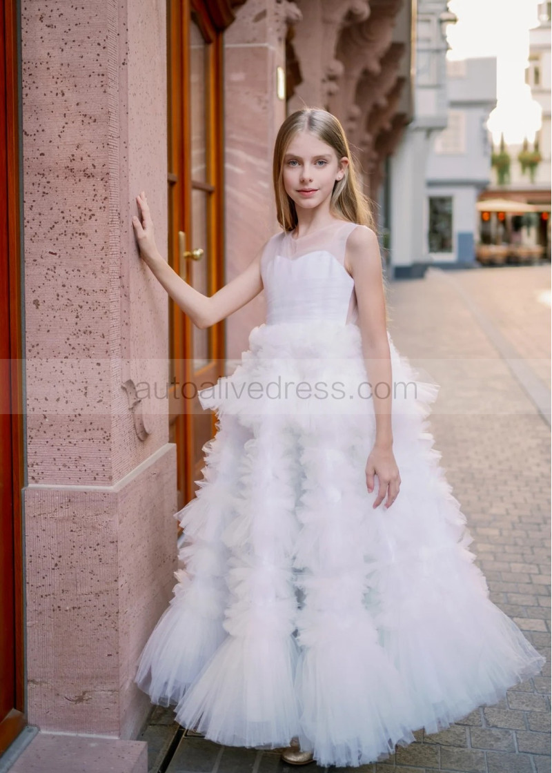 White Tulle Ruffled Fairytale Flower Girl Dress