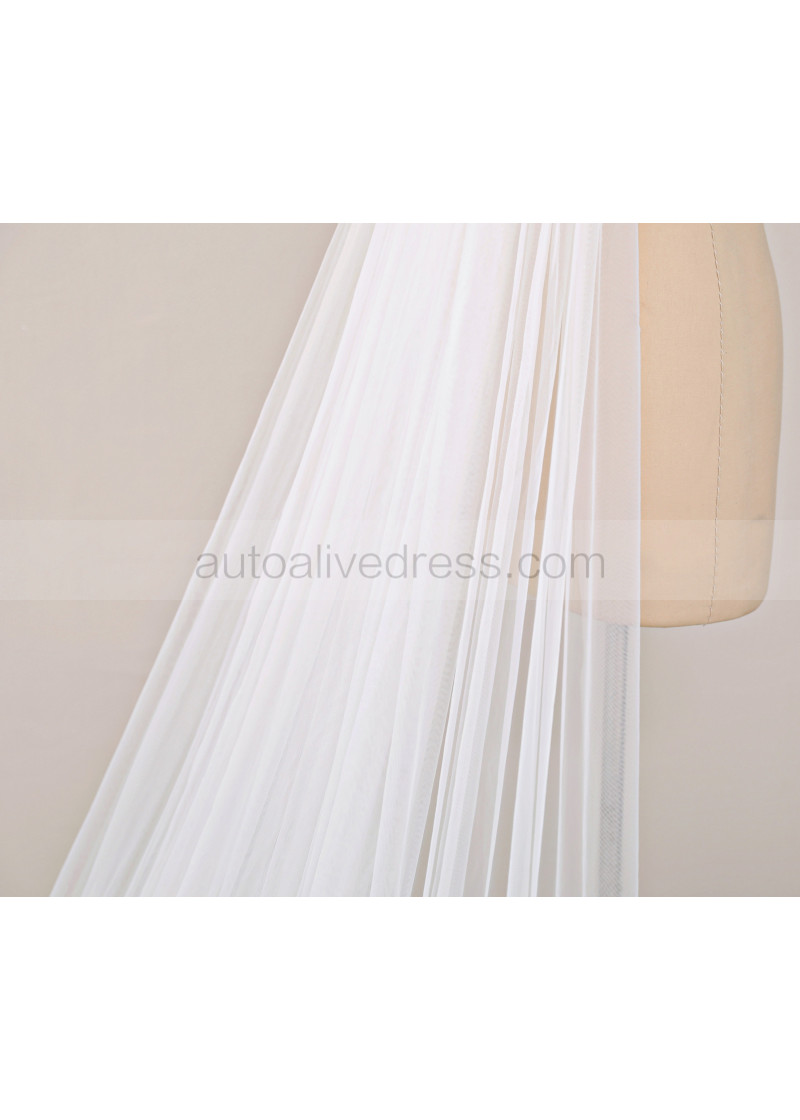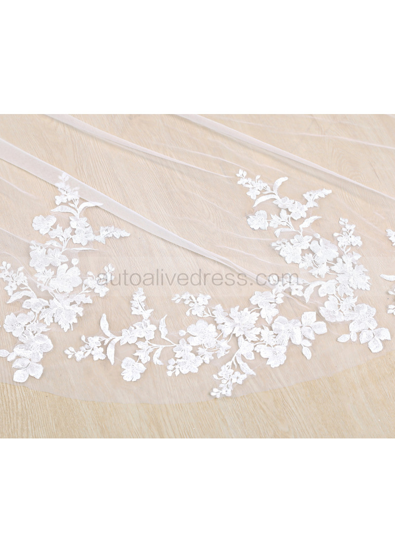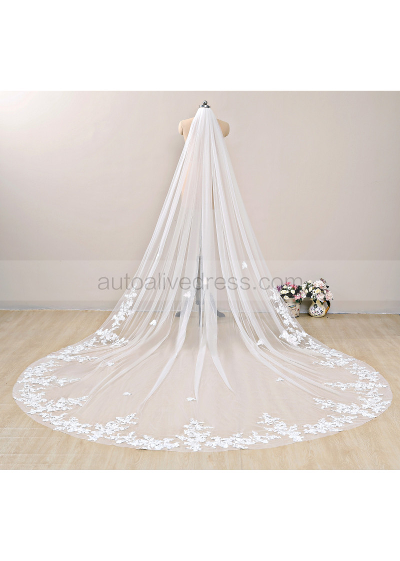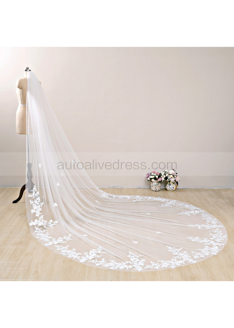 White Vintage Flowery Lace Wedding Veil Cathedral Length Veil
