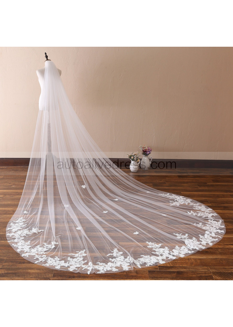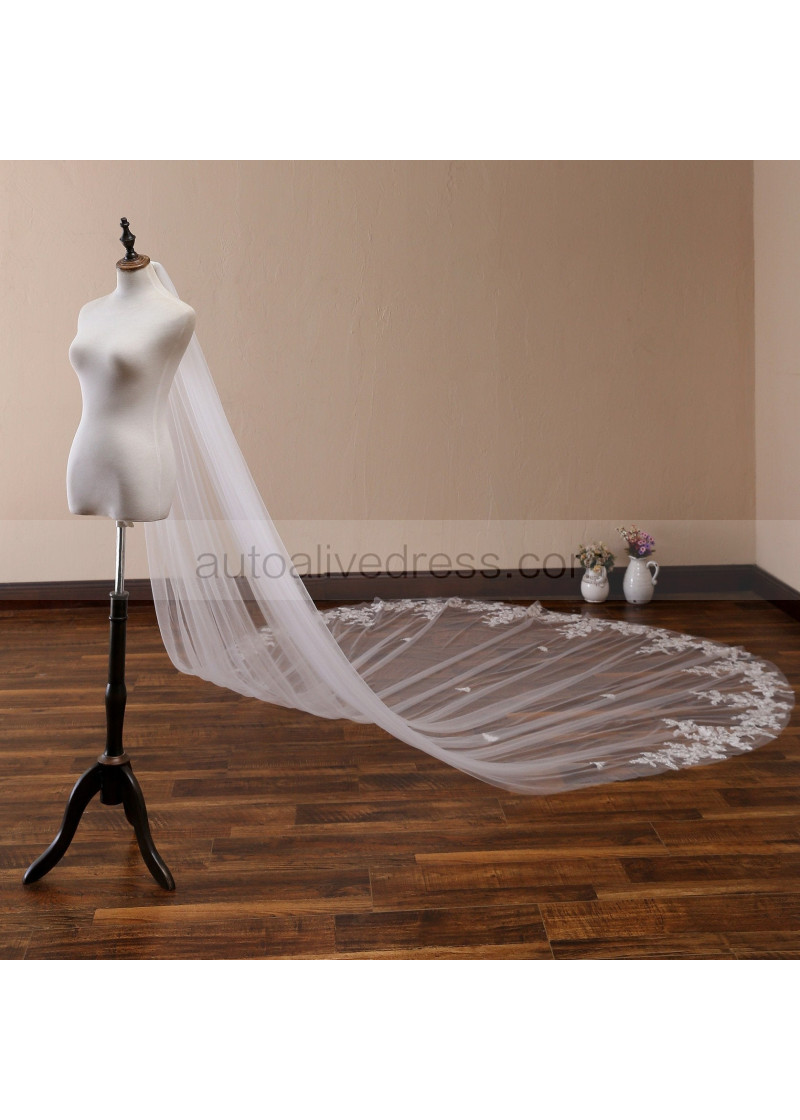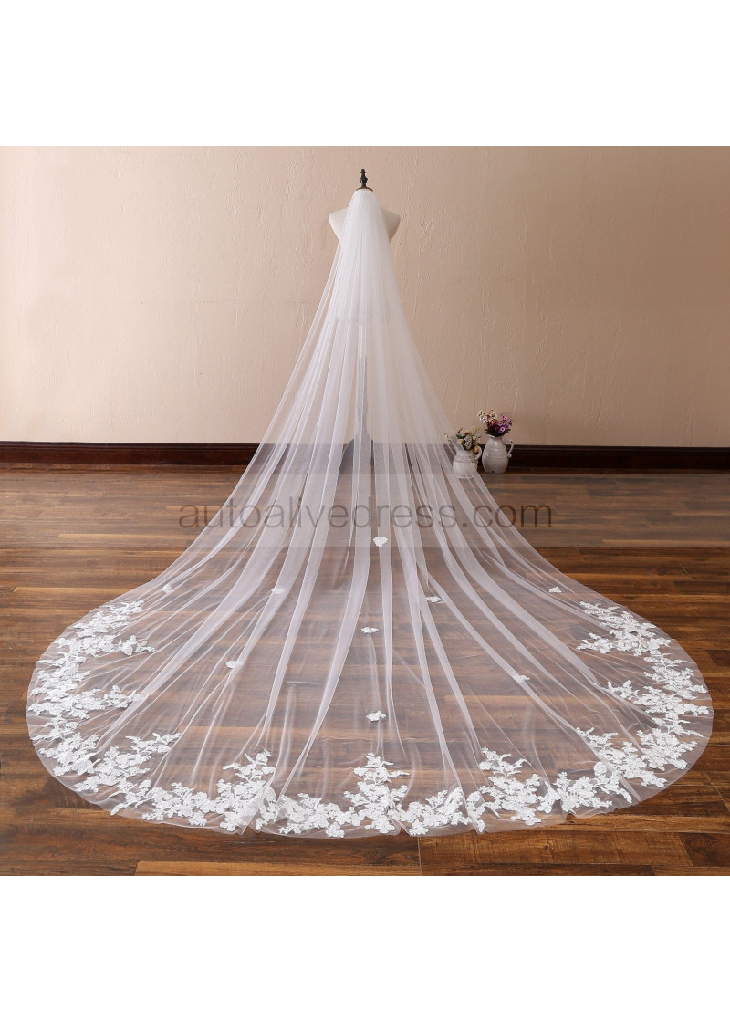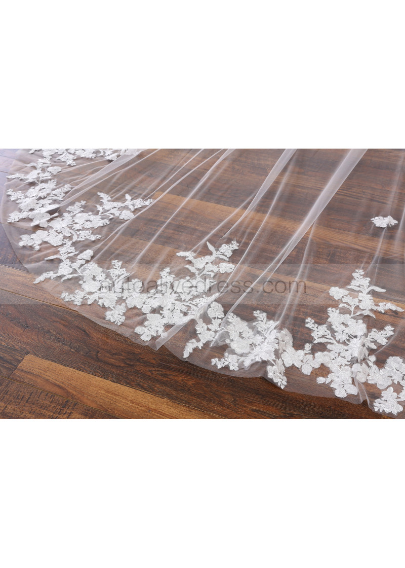 White Vintage Lace Wedding Veil Cathedral Bridal Single Tier Veil With Metal Comb