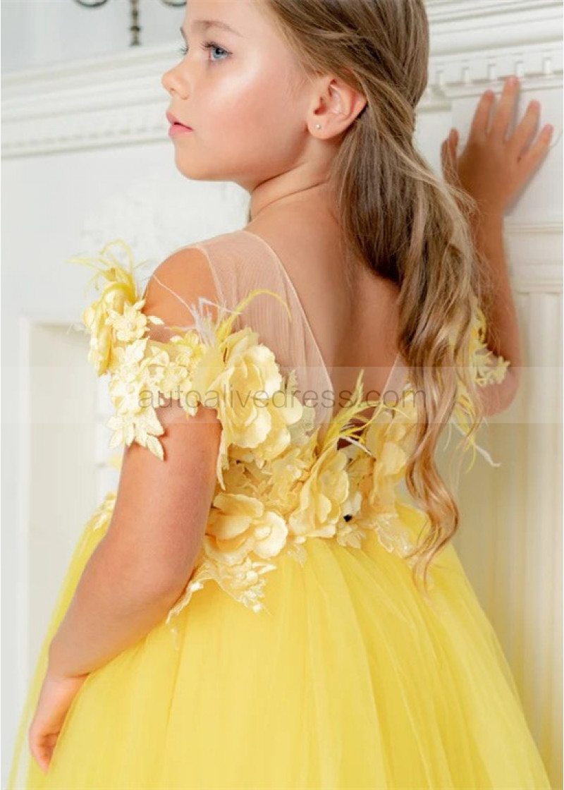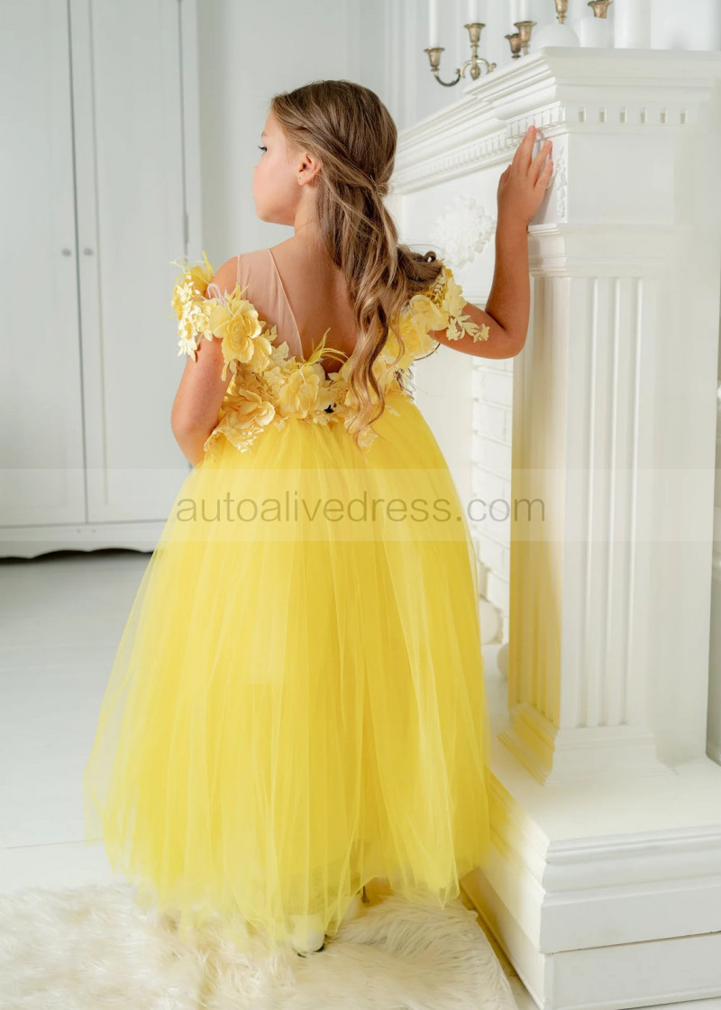 Yellow 3D Flowers Tulle Fairytale Flower Girl Dress