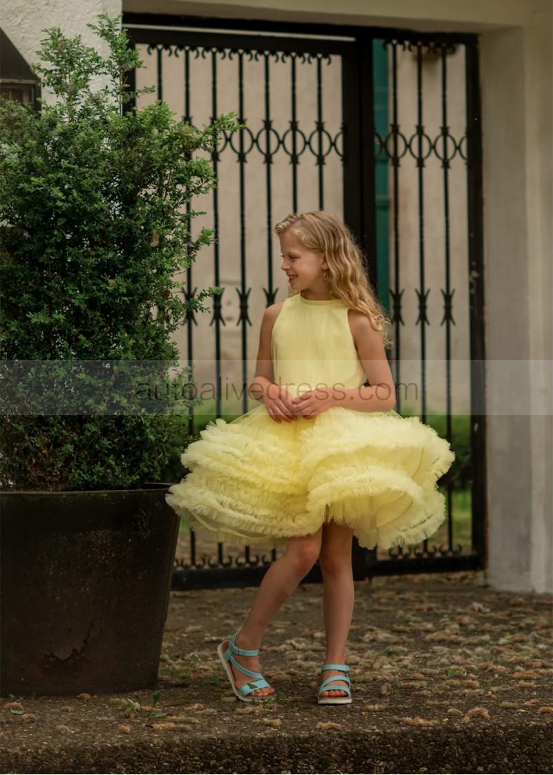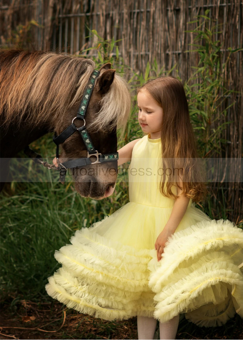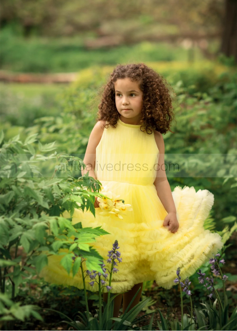 Yellow Tulle Ruffles Flower Girl Dress Birthday Party Dress