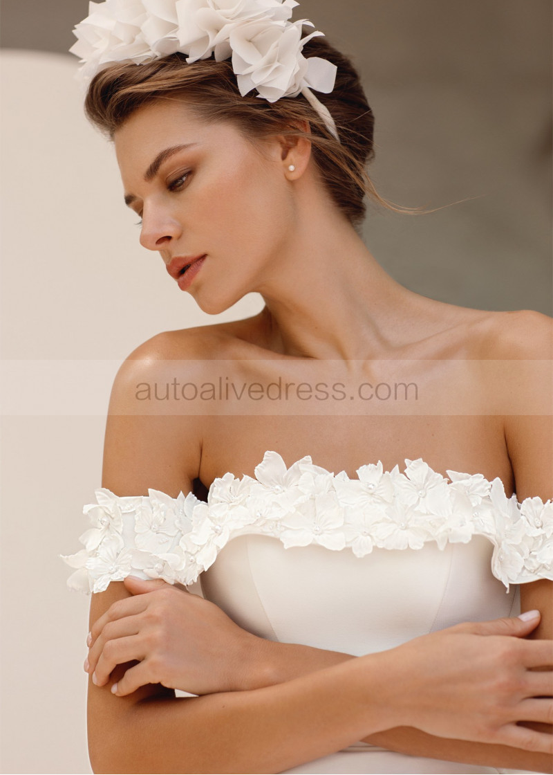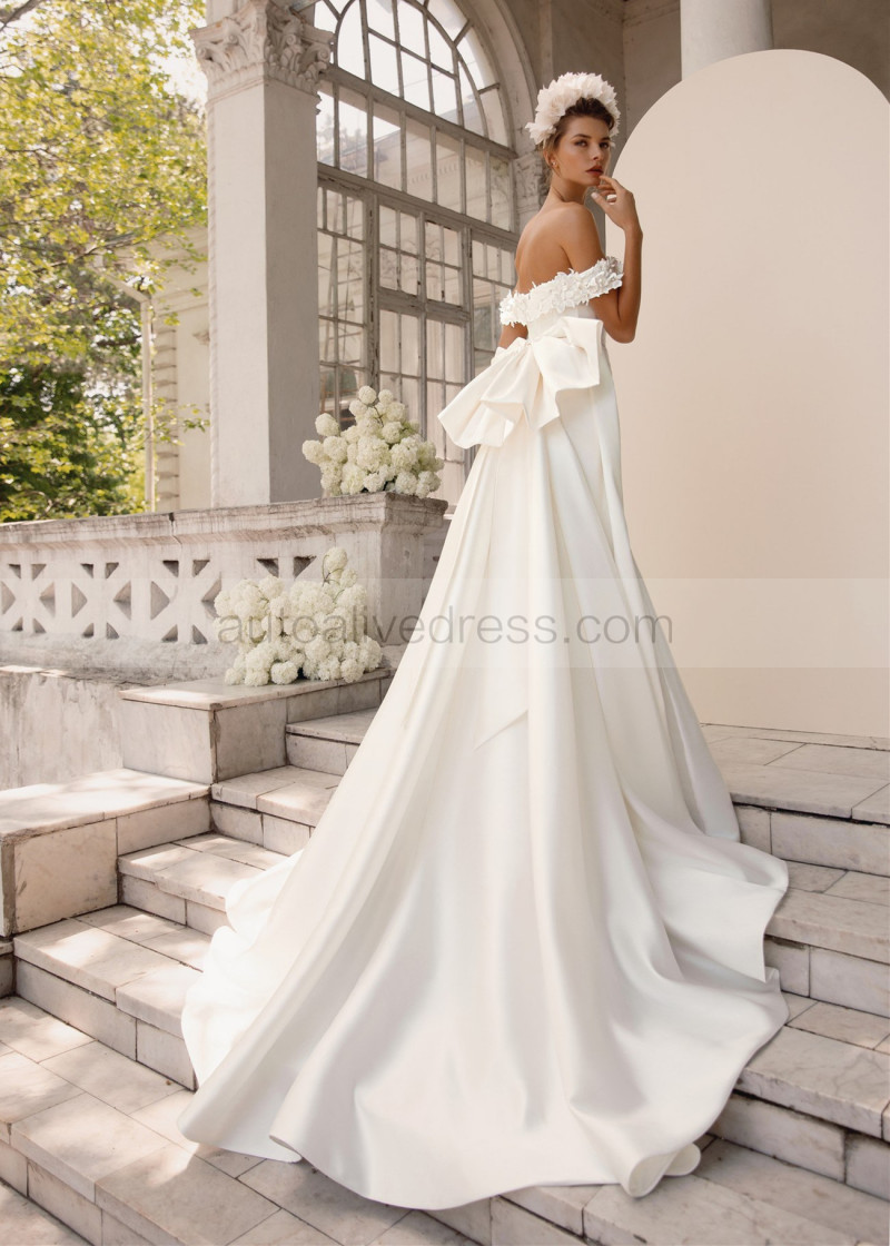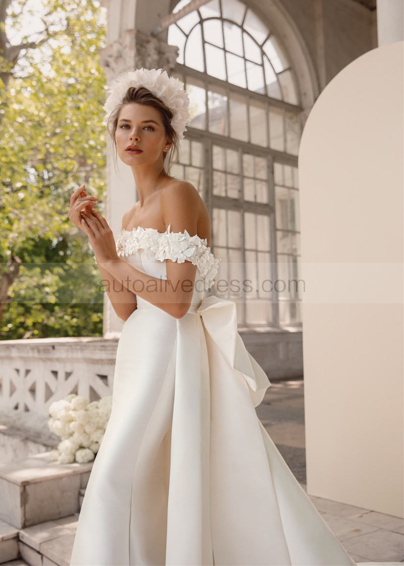 Off Shoulder Pearl Beaded Ivory Mikado Wedding Dress