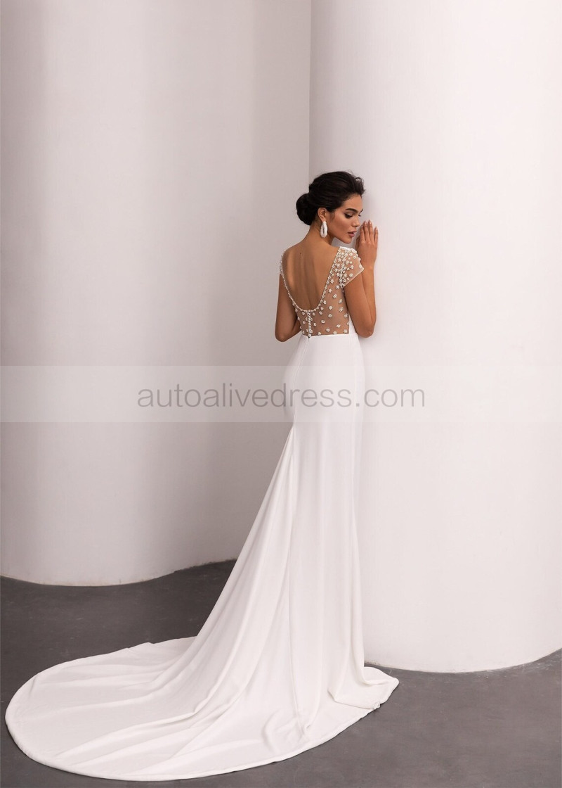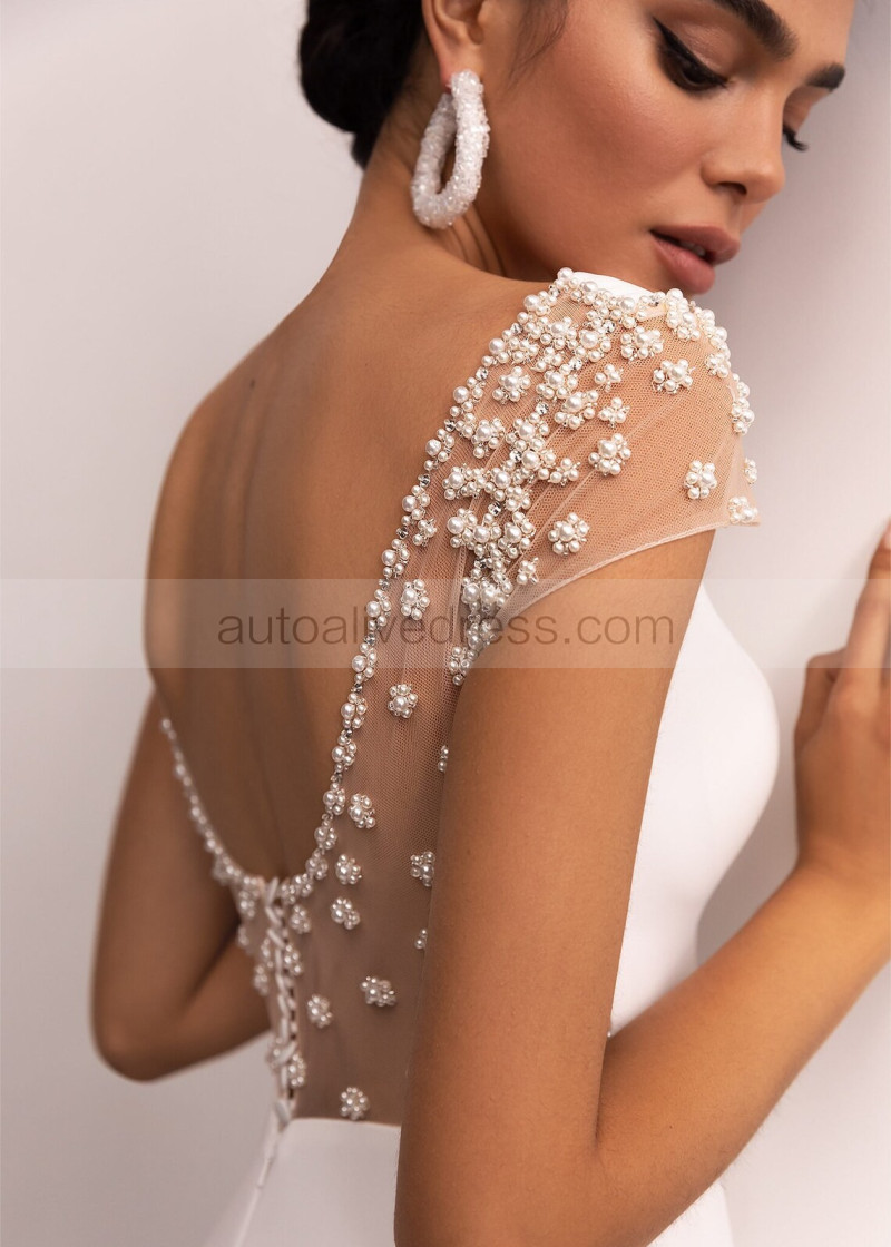 Pearls Beaded Ivory Satin Open Back Graceful Wedding Dress