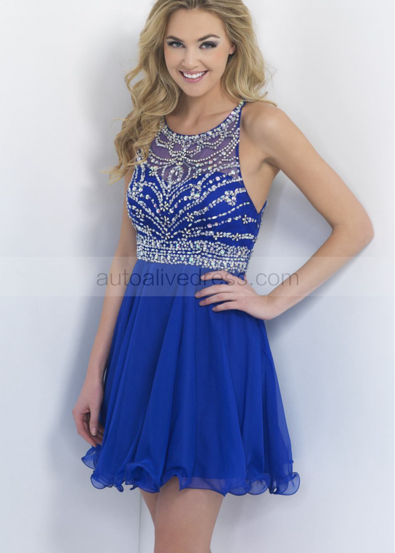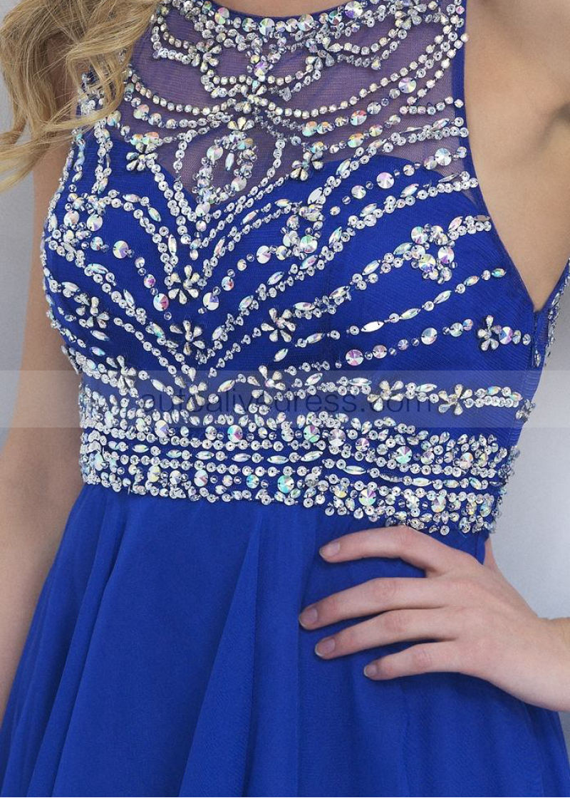 Beaded Halter Royal Blue Chiffon Luxurious Homecoming Dress