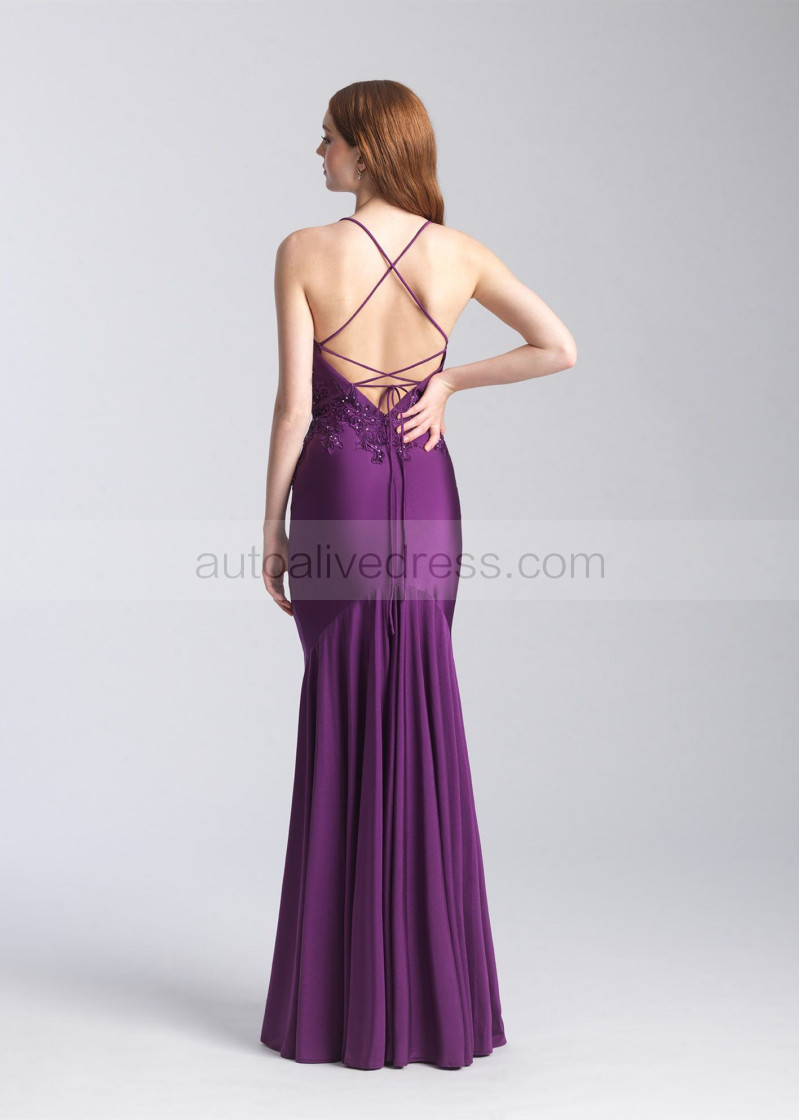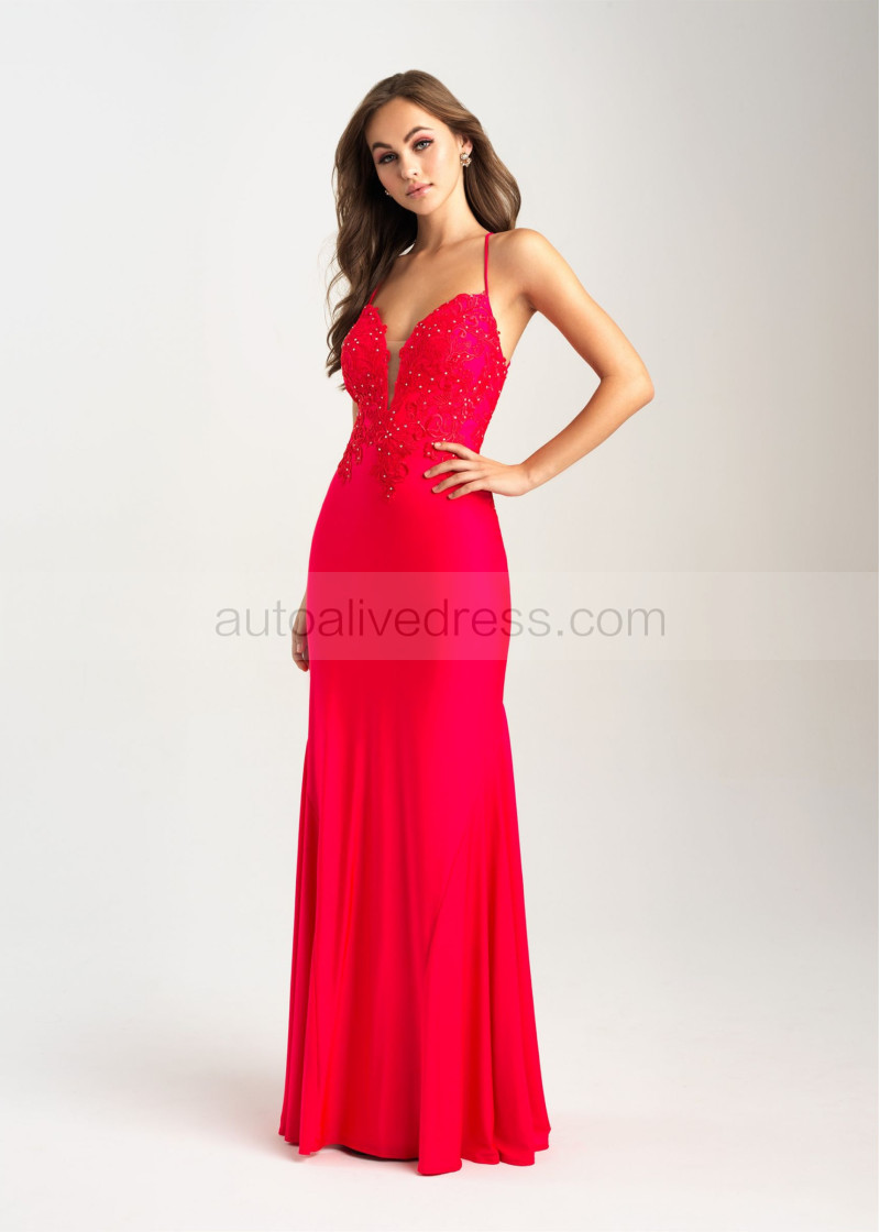 Beaded Lace Jersey Corset Back Long Prom Dress