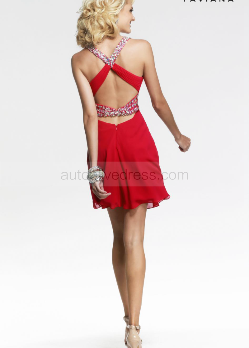 Beaded Red Chiffon Criss Cross Back Sexy Short Homecoming Dress