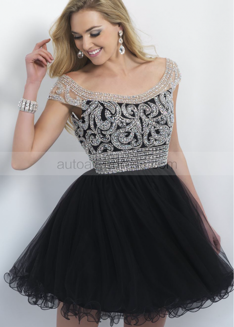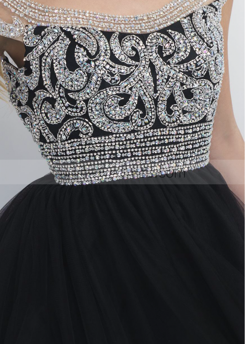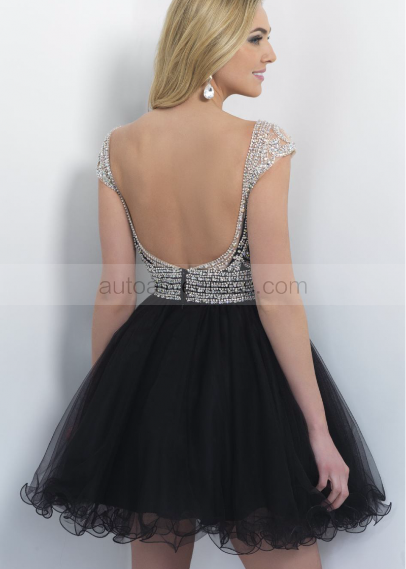 Beaded Black Tulle Low Back Short Homecoming Dress