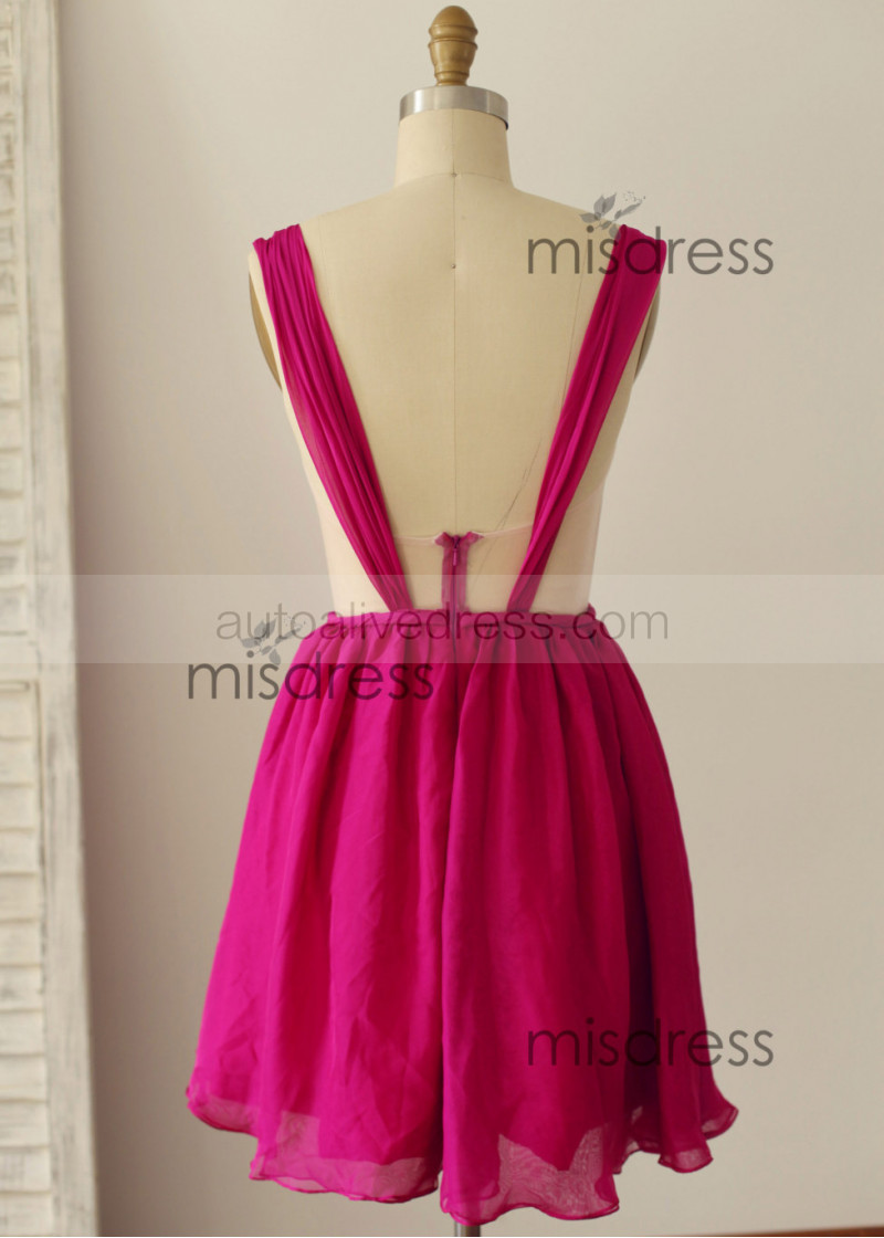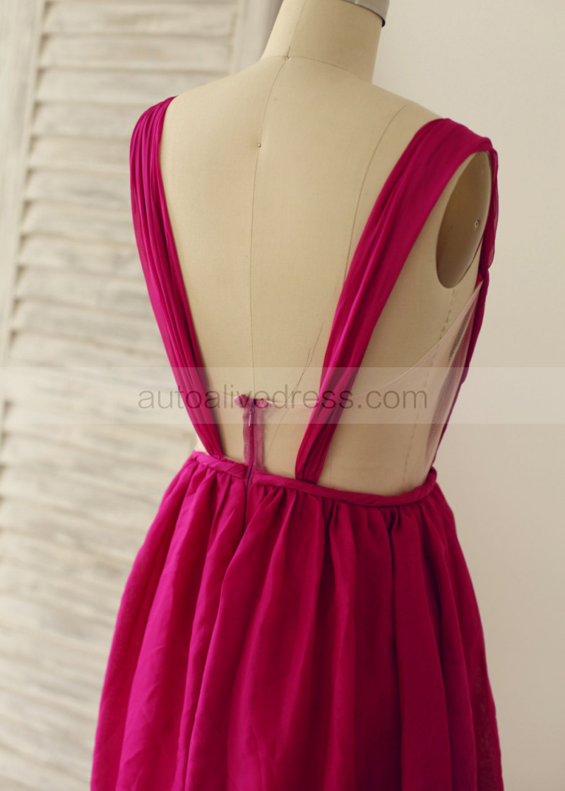 Burgundy Chiffon Short Prom Dress