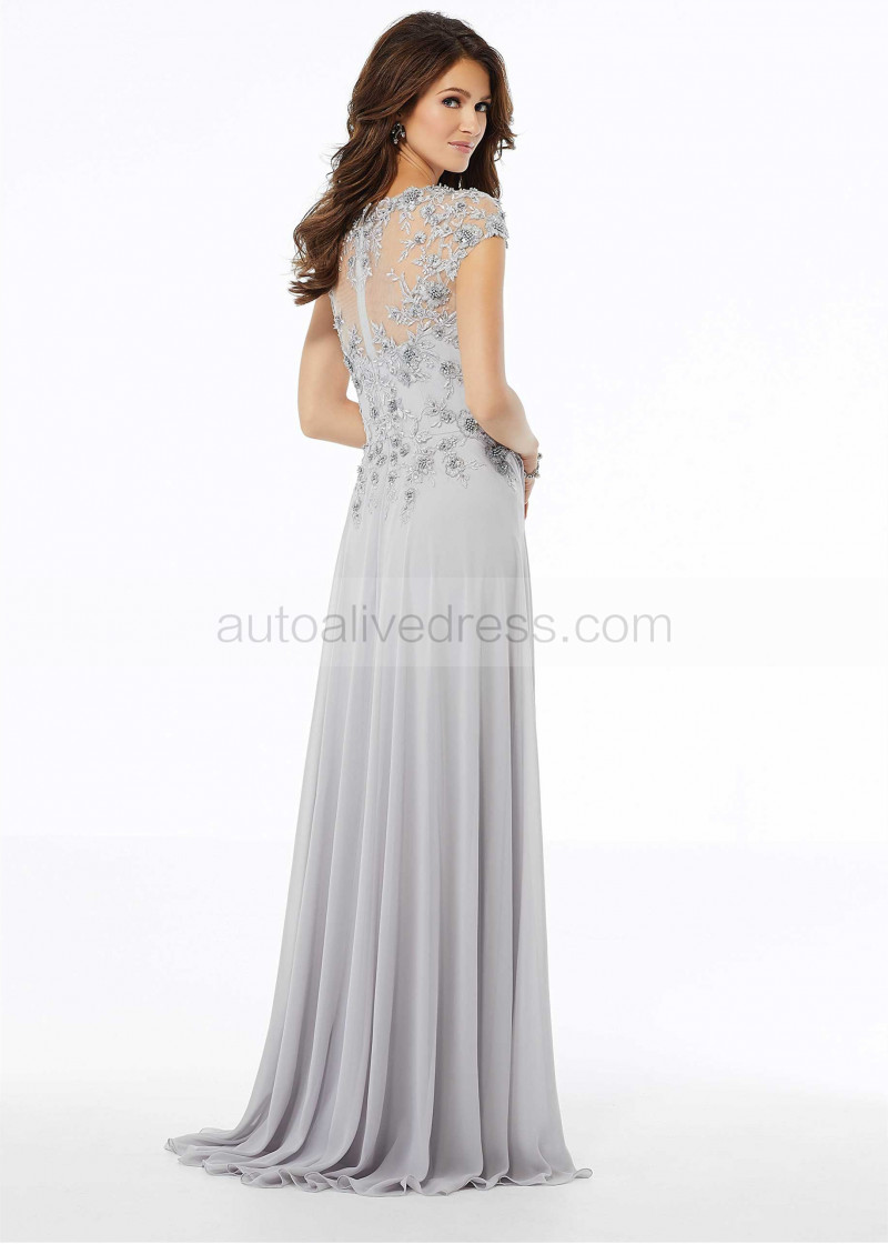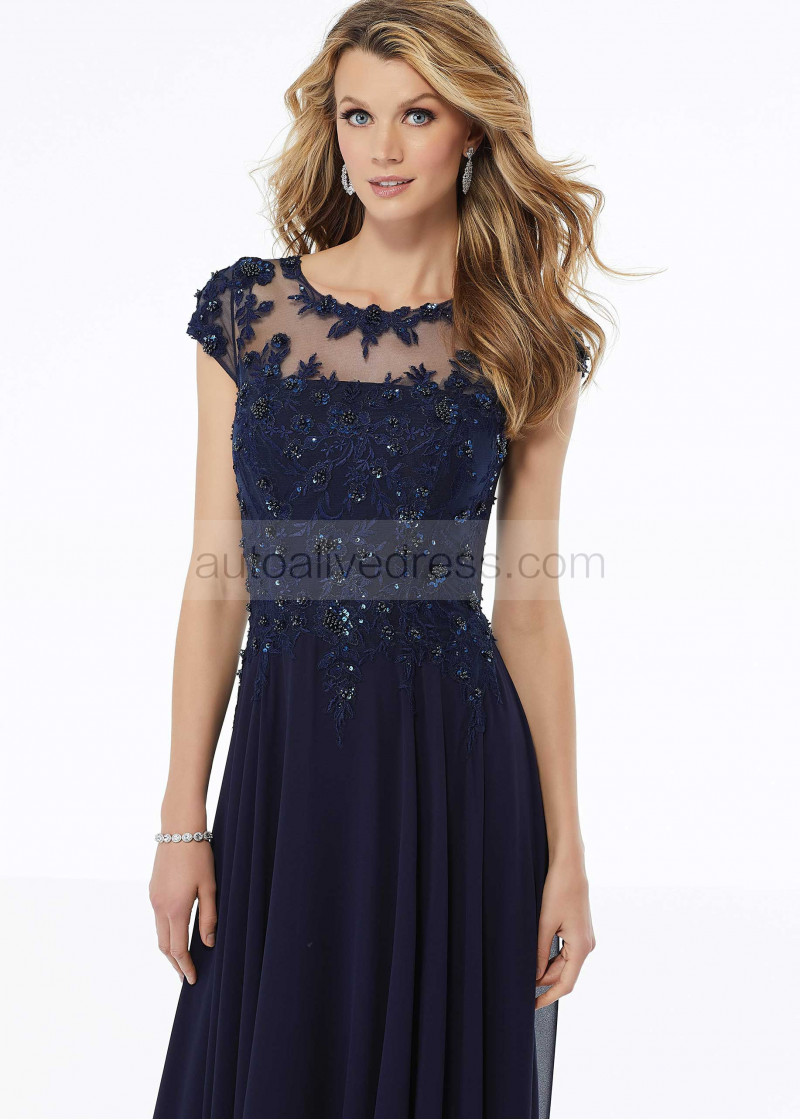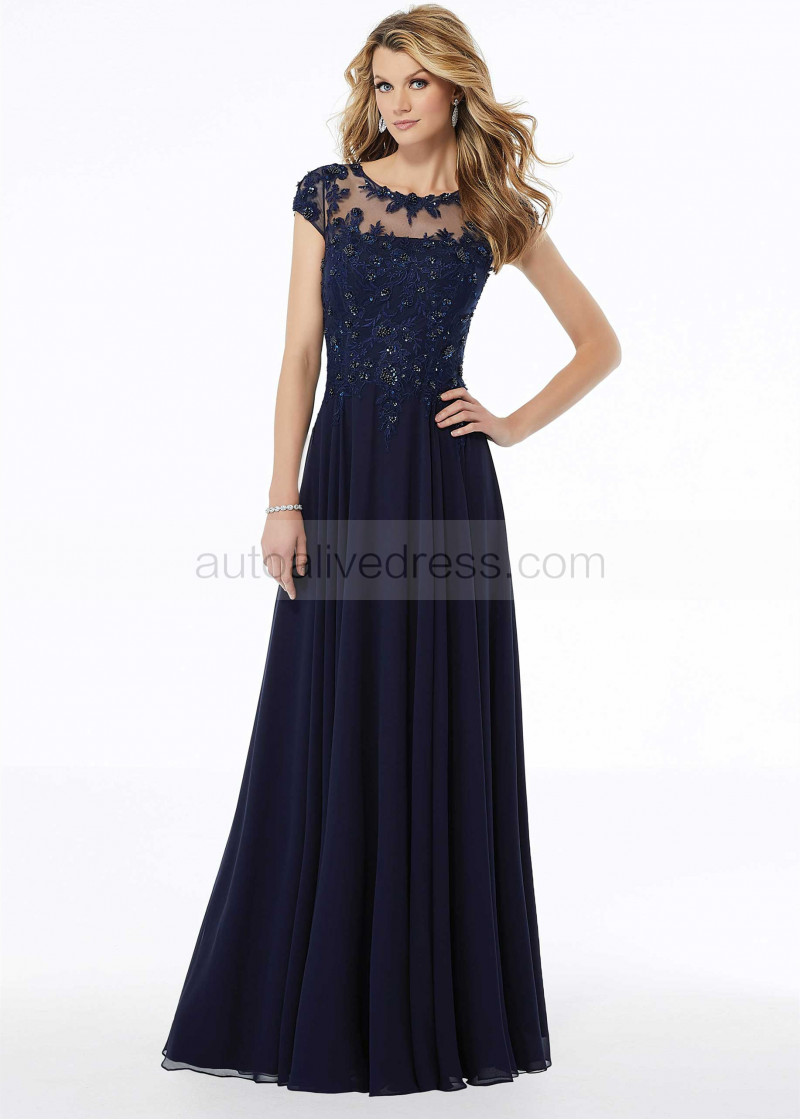 Cap Sleeves Beaded Lace Chiffon Amazing Evening Dress