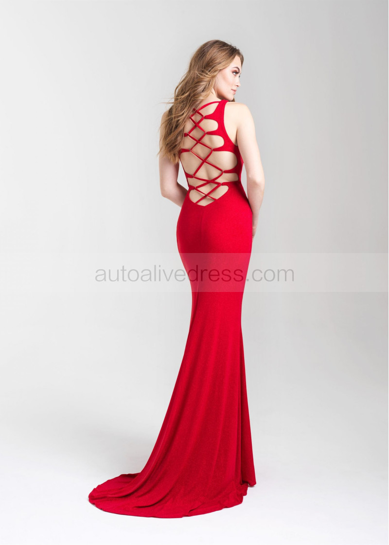 Glittering Jersey Slit Lace-up Back Prom Dress
