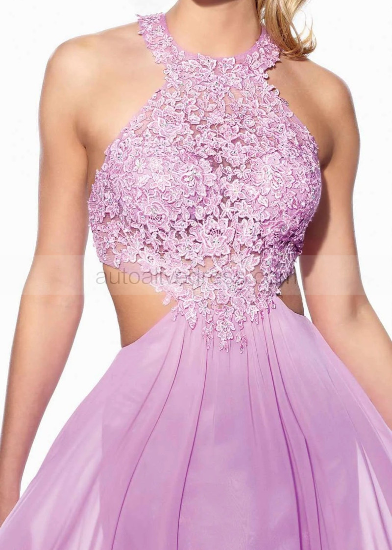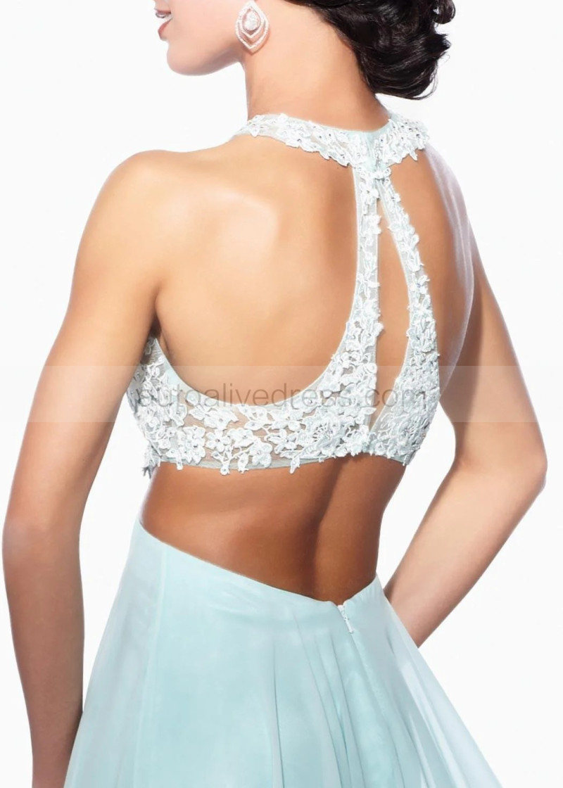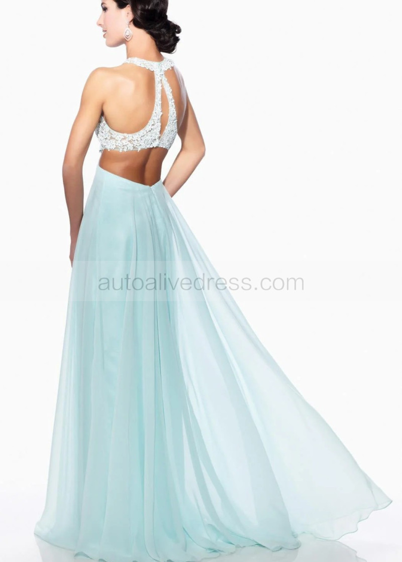 Halter Neck Floral Lace Chiffon Cutout Prom Dress