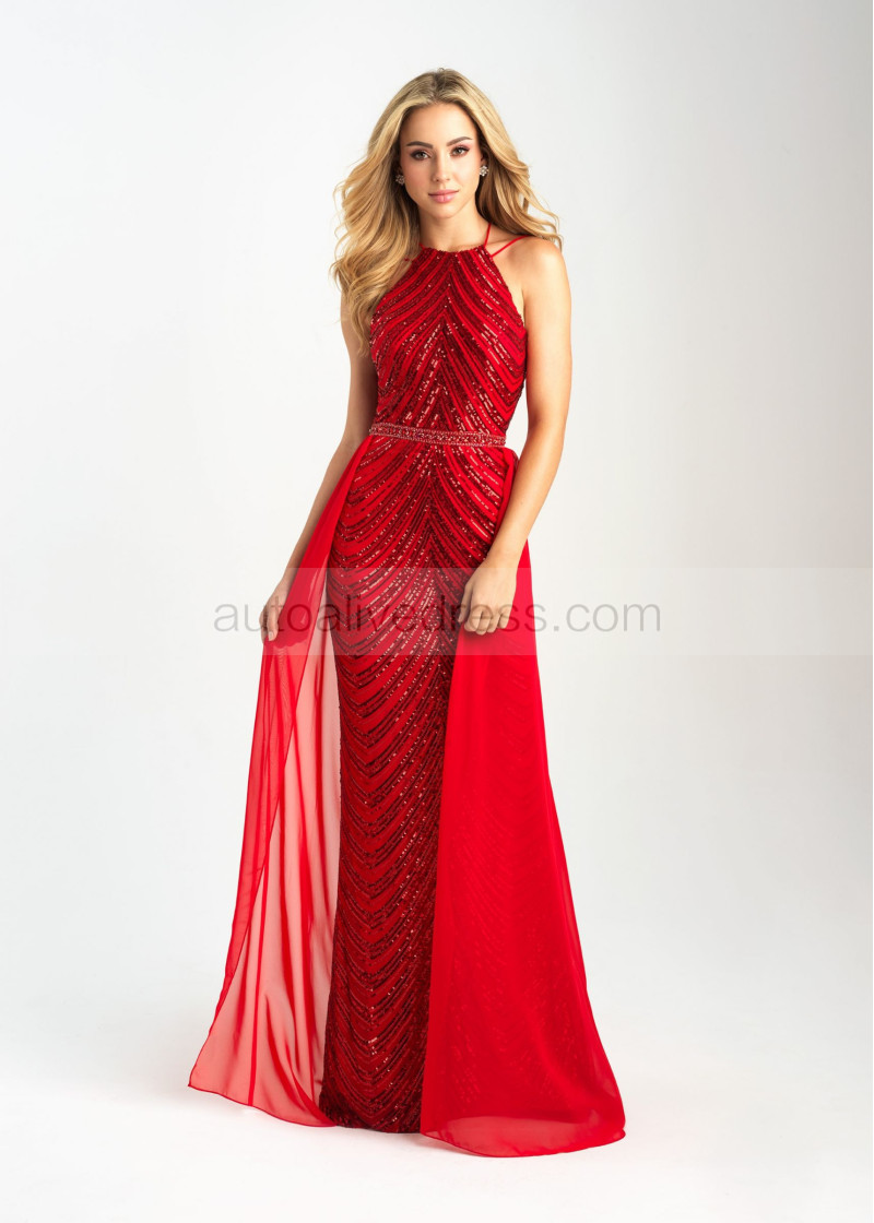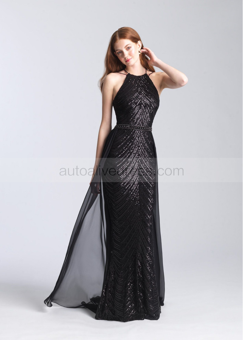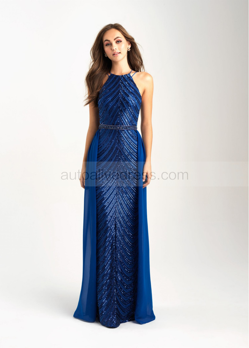 High Neck Sequin Chiffon Corset Back Long Prom Dress