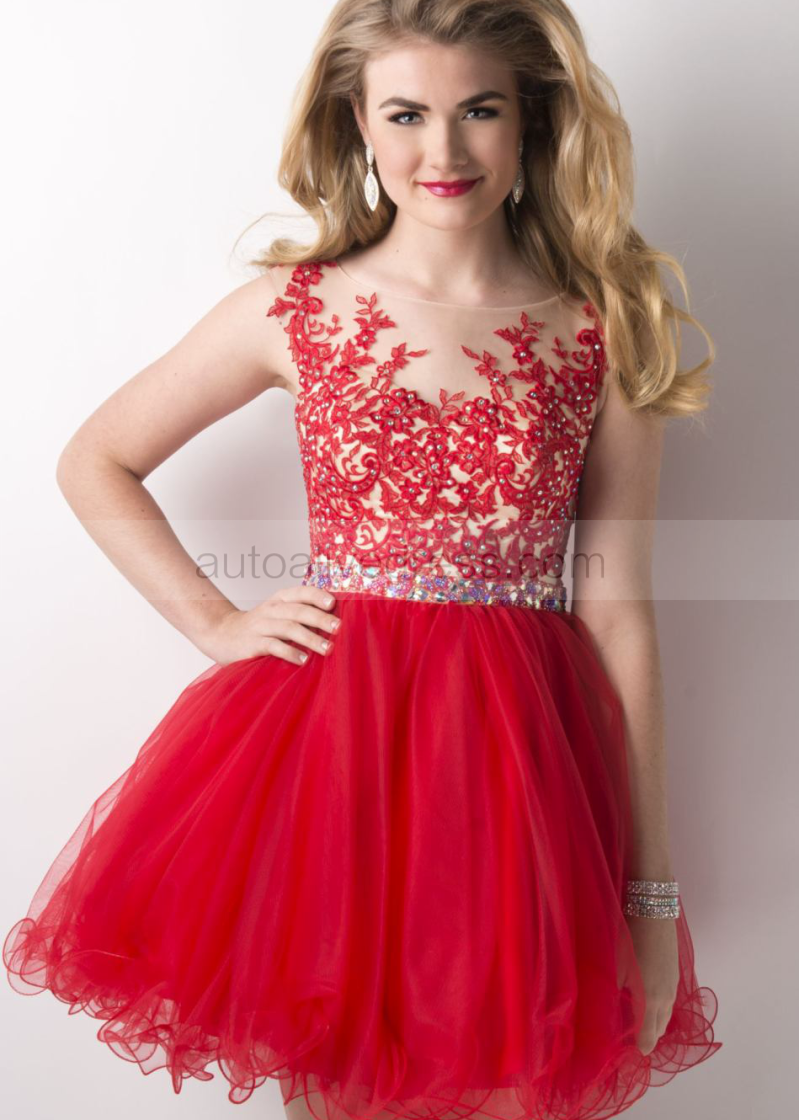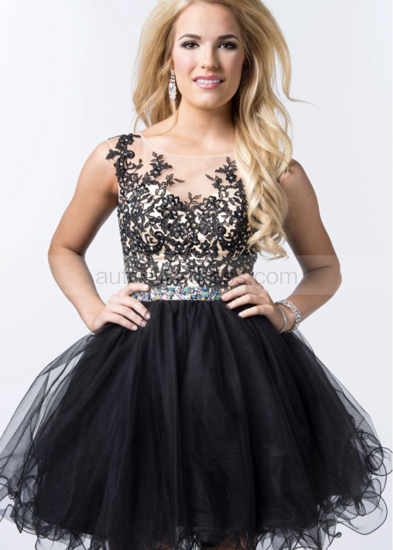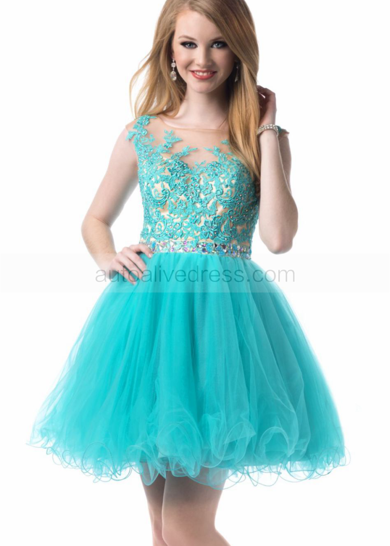 Lace Tulle V Back Beaded Belt Knee Length Prom Dress