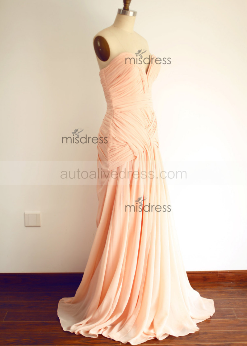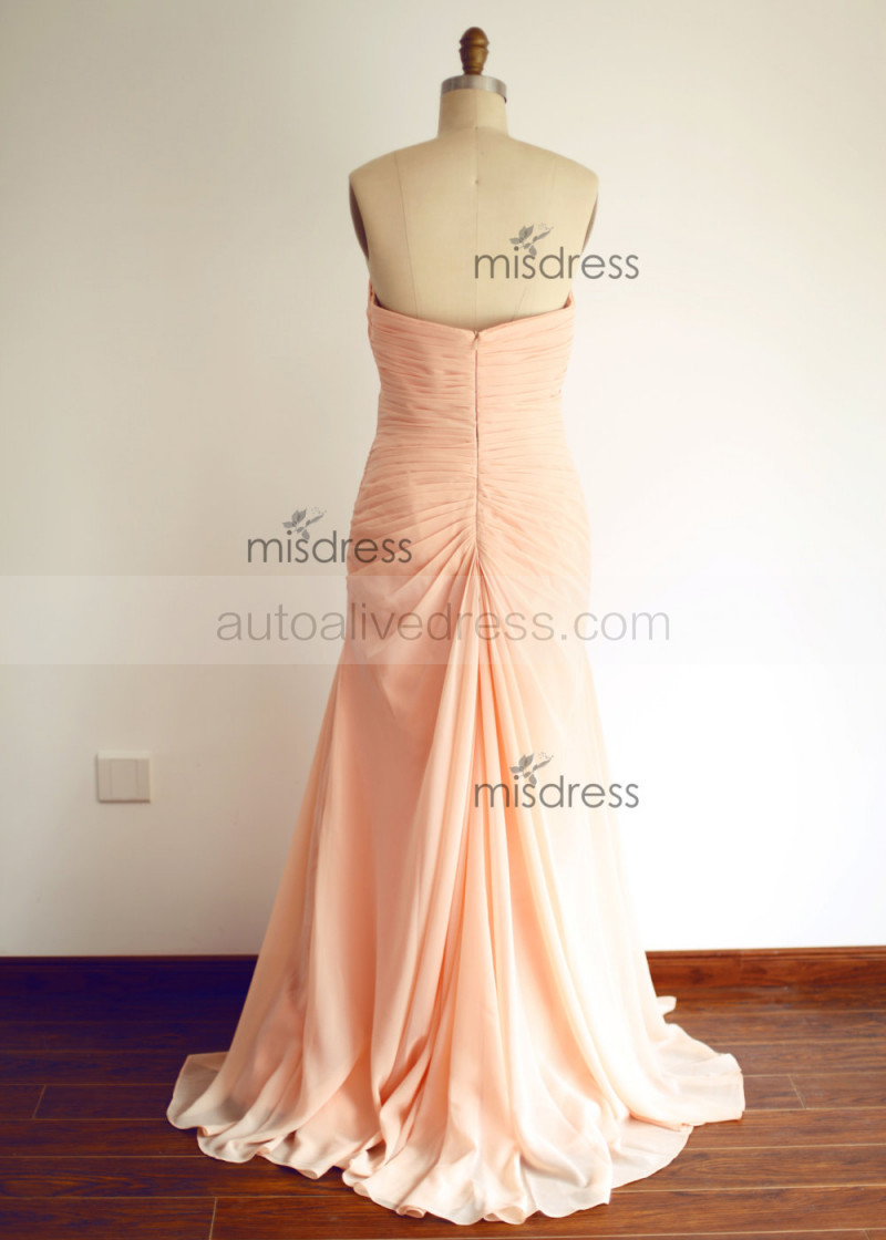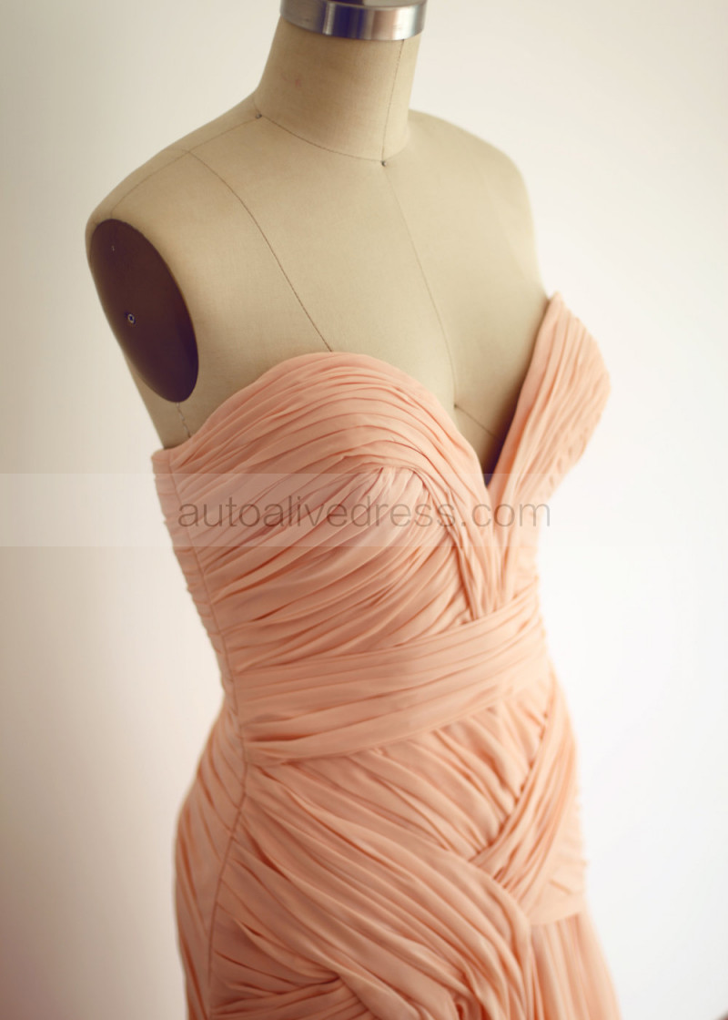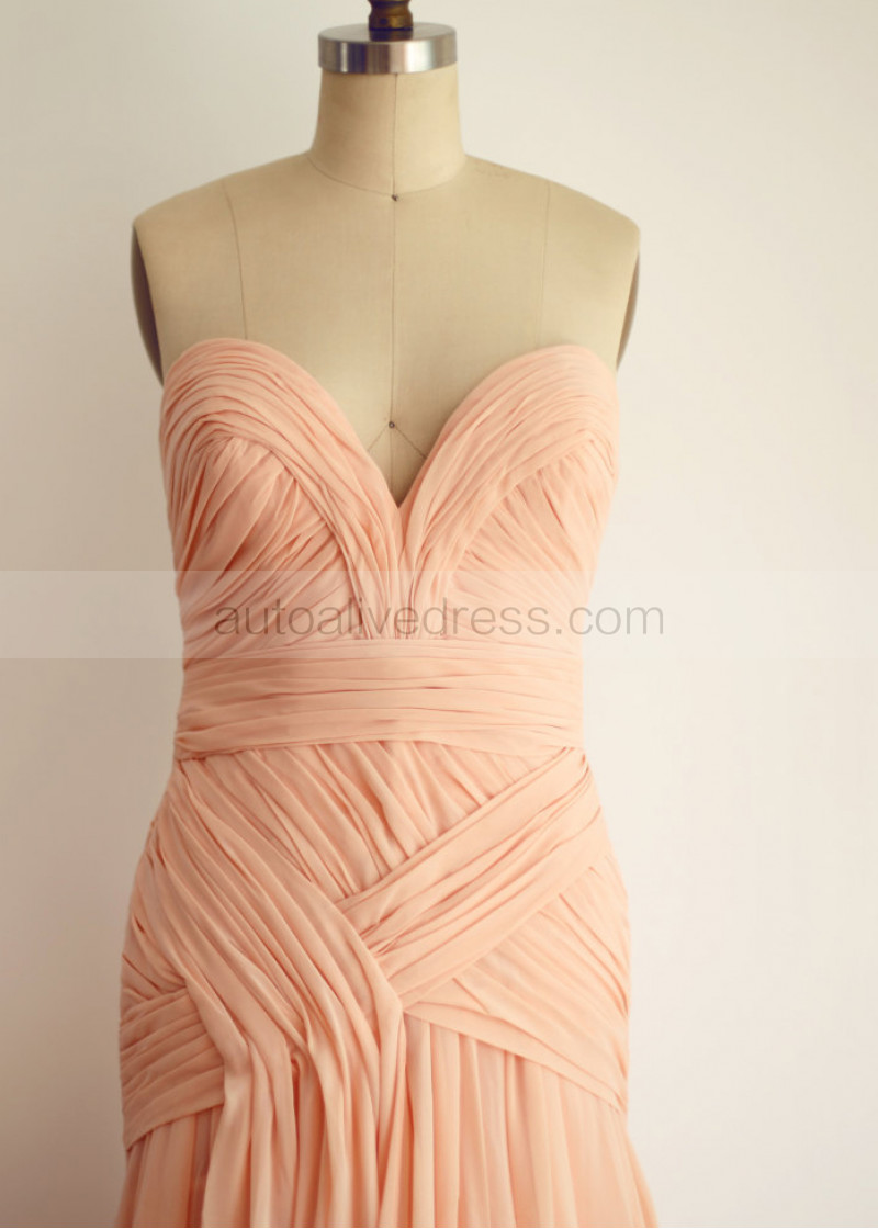 Peach Sweetheart Chiffon Slit Long Prom Dress