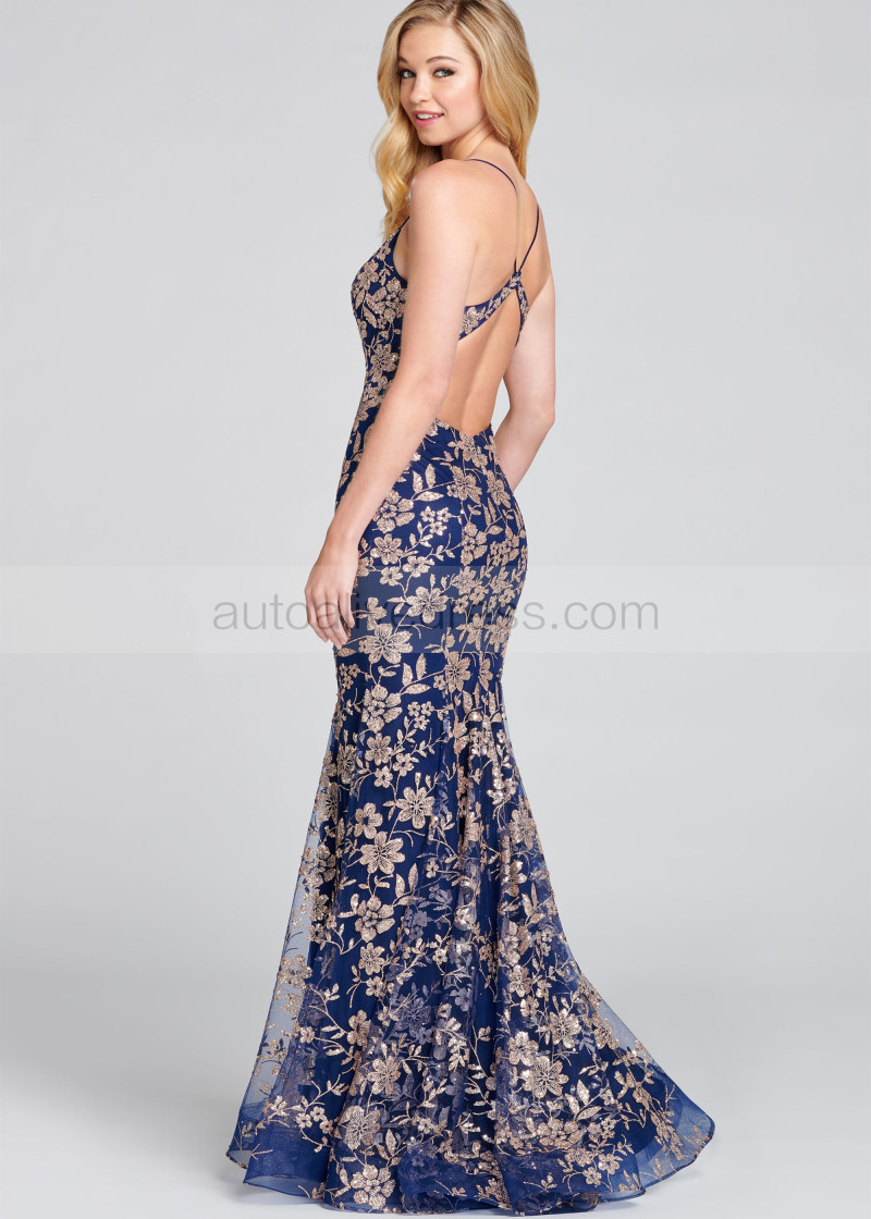 Navy Blue Tulle Cross Back Prom Dress