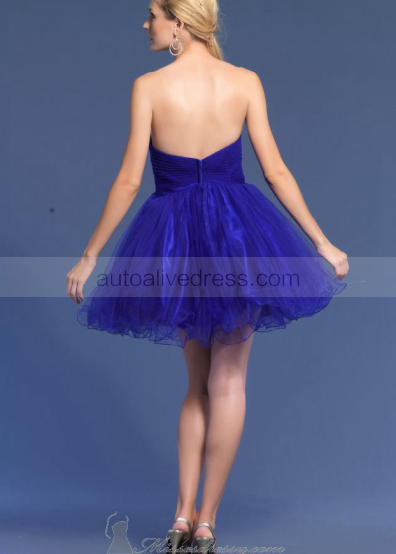Royal Blue Tulle Beaded Semi-sweetheart Neckline Knee Length Prom Dress