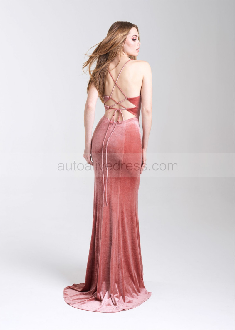 Sexy Mauve Sparkle Velvet Slit Lace-up Back Prom Dress