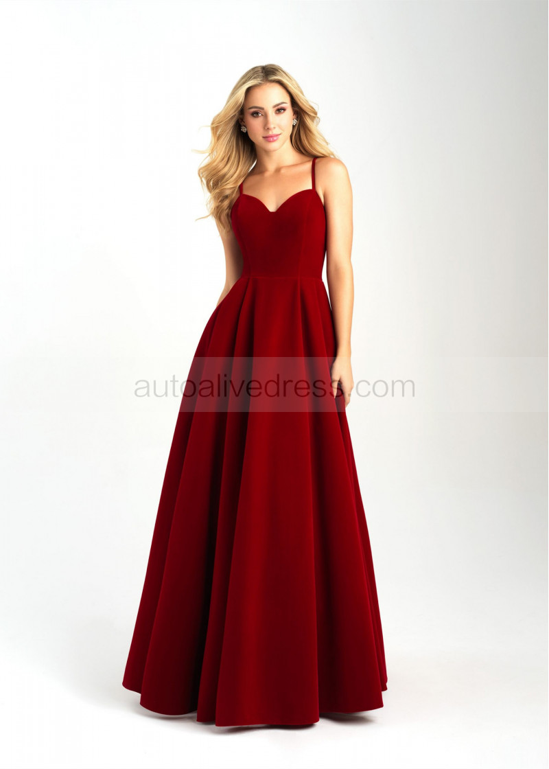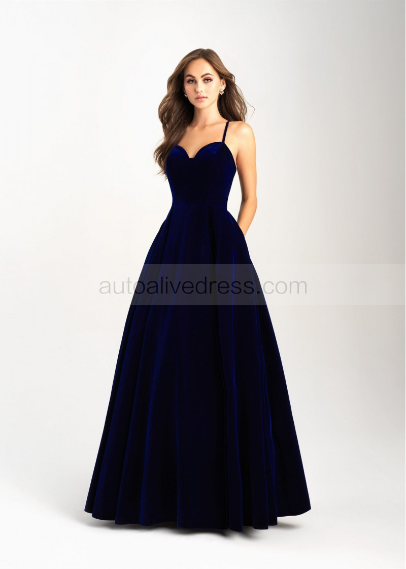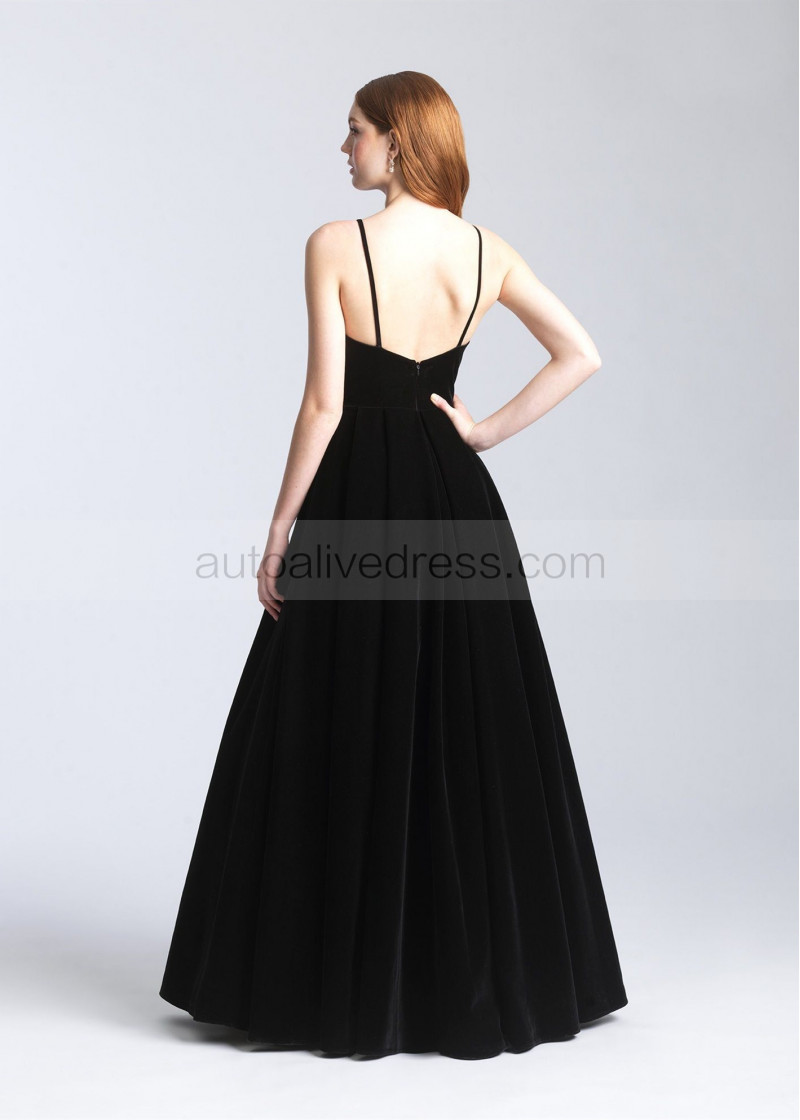 Spaghetti Straps Velvet Open Back Long Elegant Prom Dress