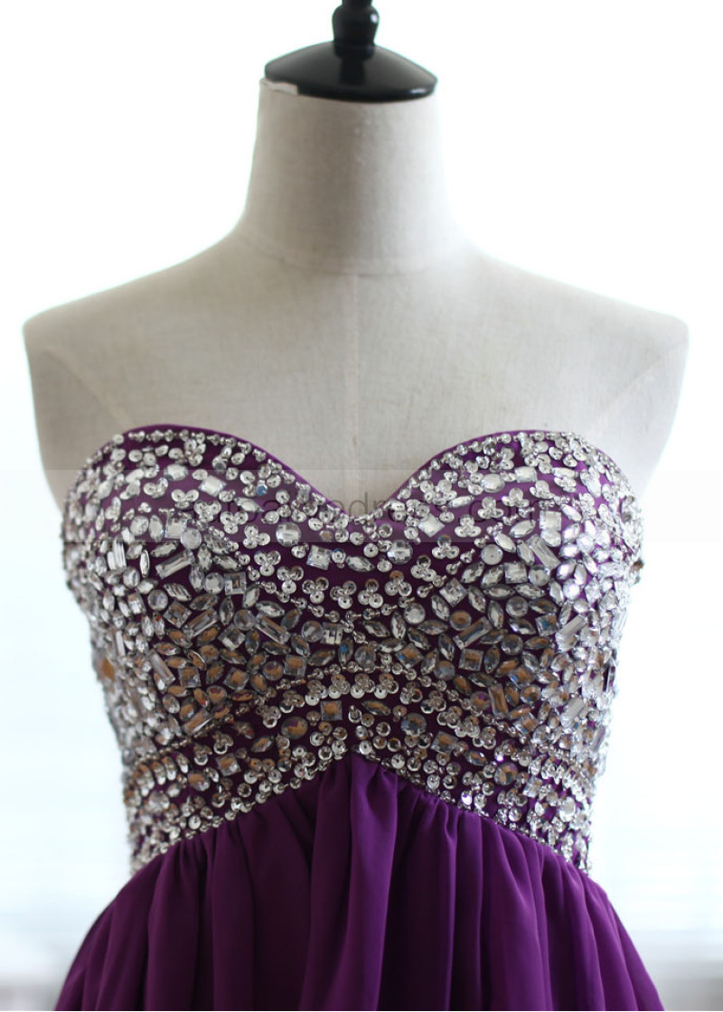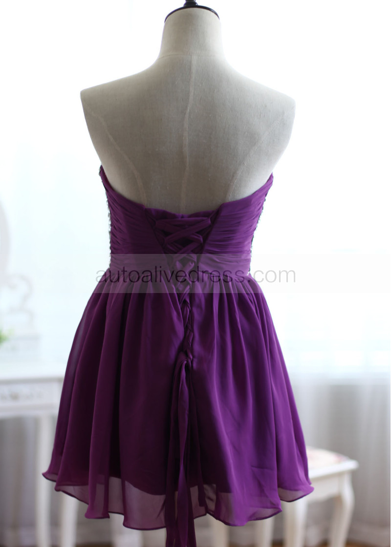 Strapless Purple Chiffon Short Rhinestone Prom Dress