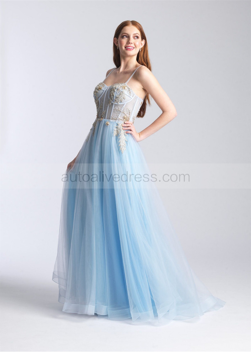 Sweetheart Neck Beaded Lace Tulle Prom Dress