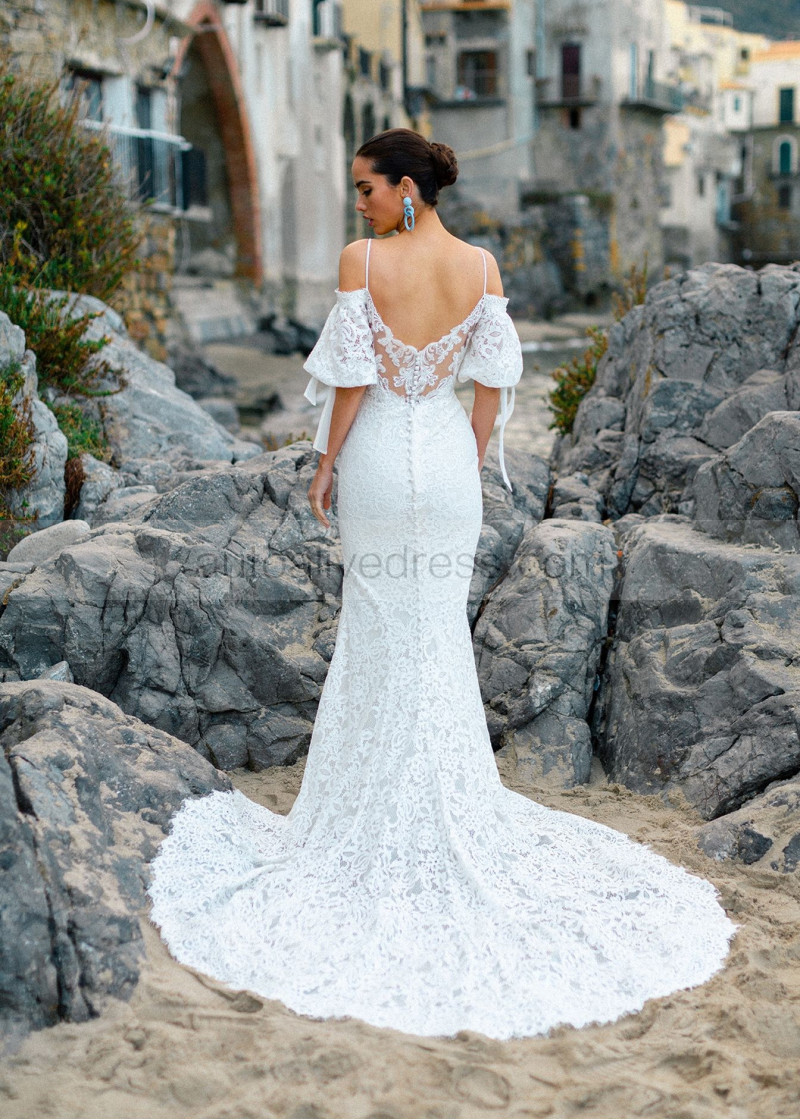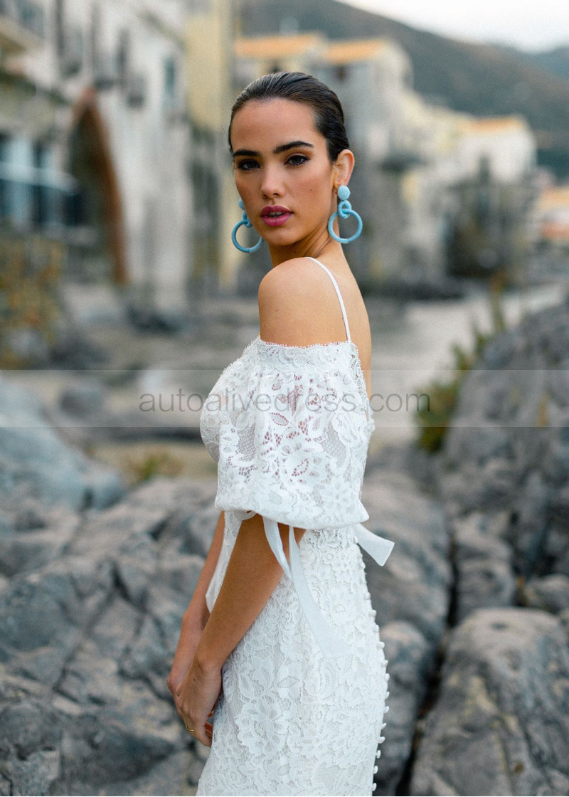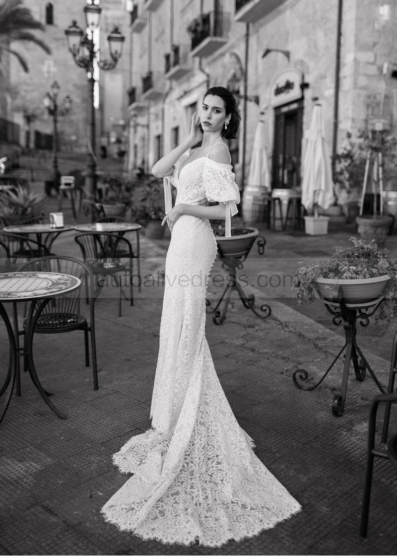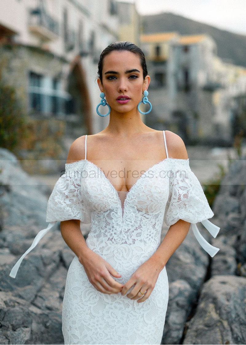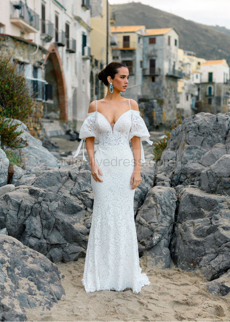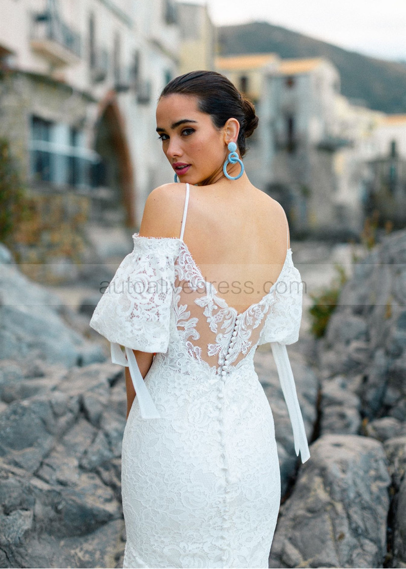 Puff Off Shoulder Sleeve Ivory Lace Wedding Dress