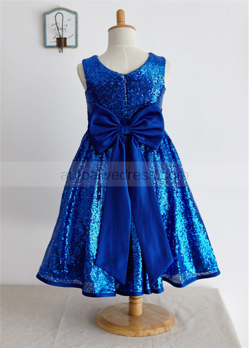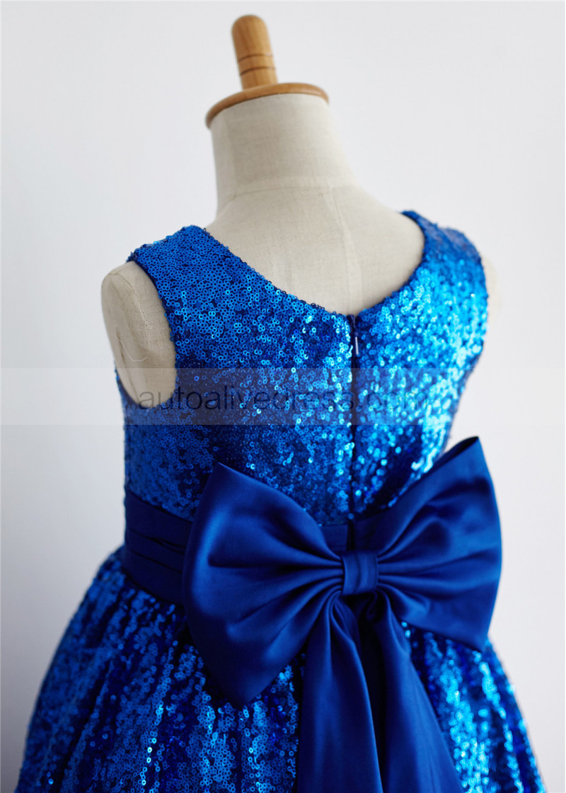 Royal Blue Sequin Knee Length Flower Girl Dress