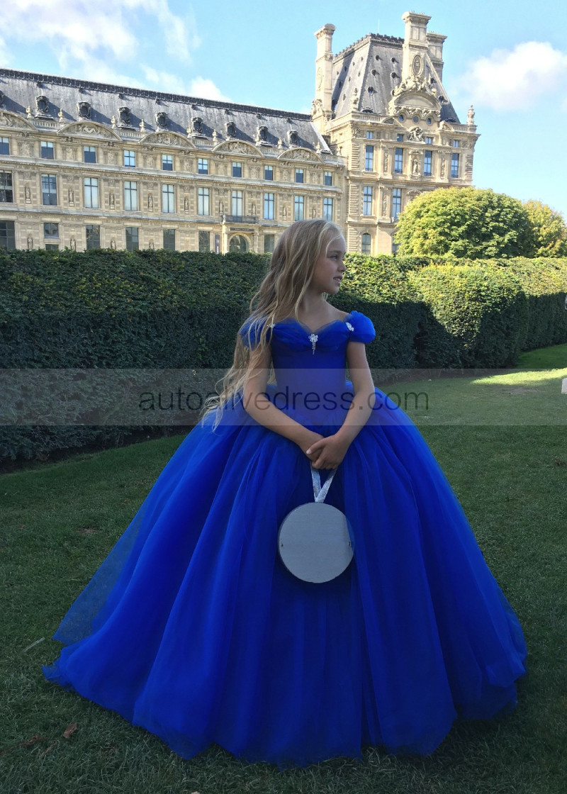 Royal Blue Tulle Long Flower Girl Dress Princess Dress