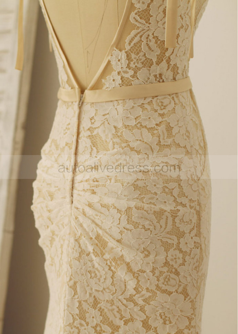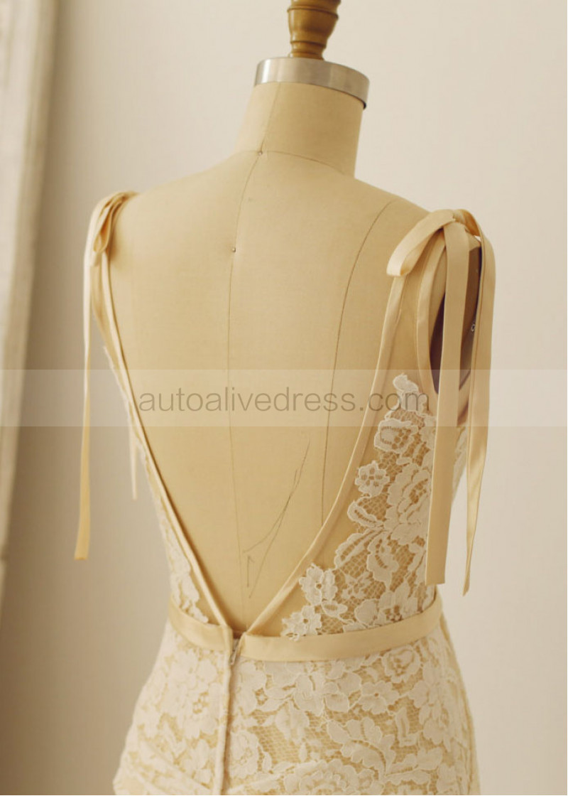 | Shown Color | Ivory Lace With Champagne Lining/Bow/Sash |