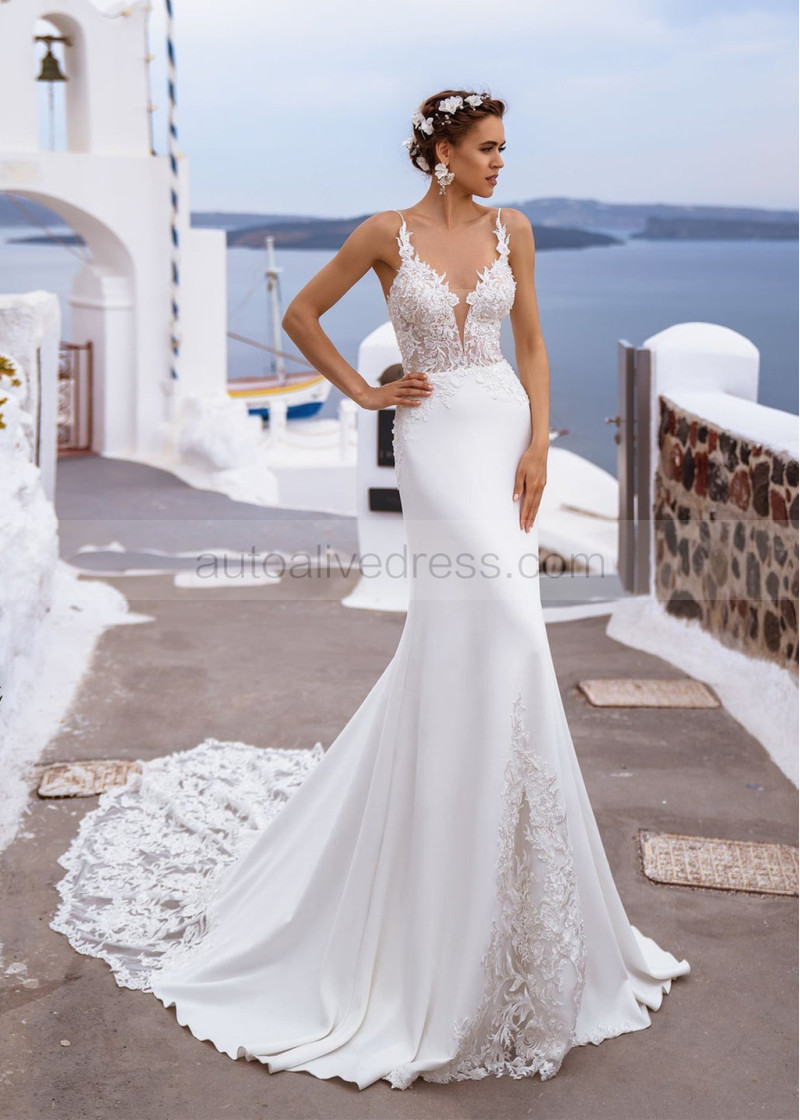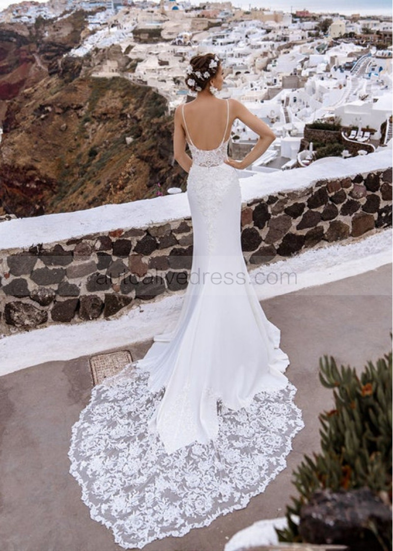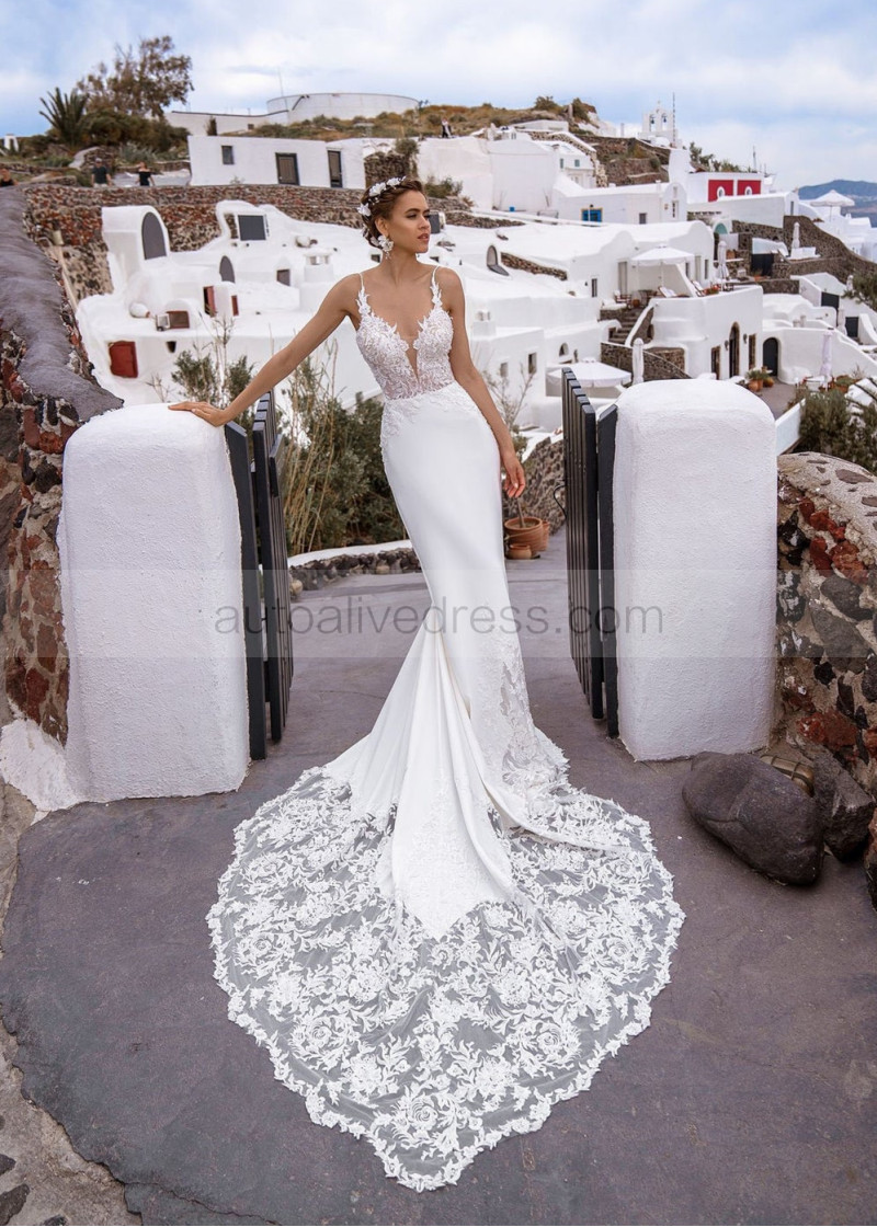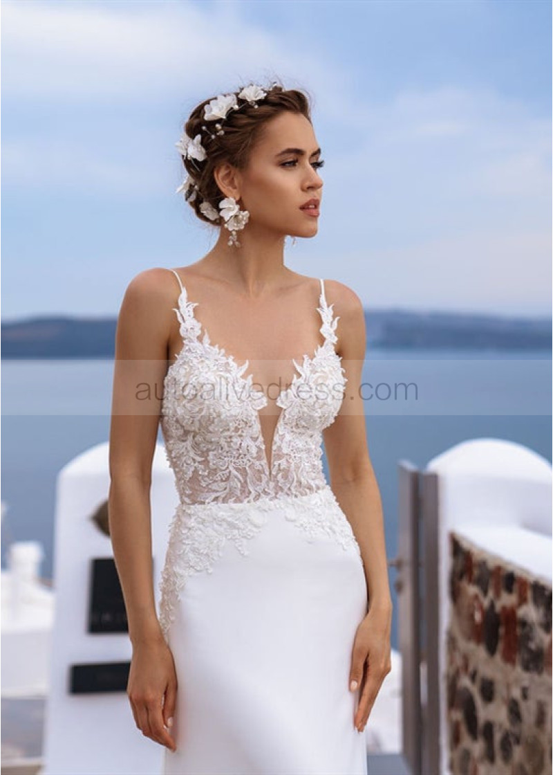 Sexy Ivory Lace Satin Beaded Wedding Dress