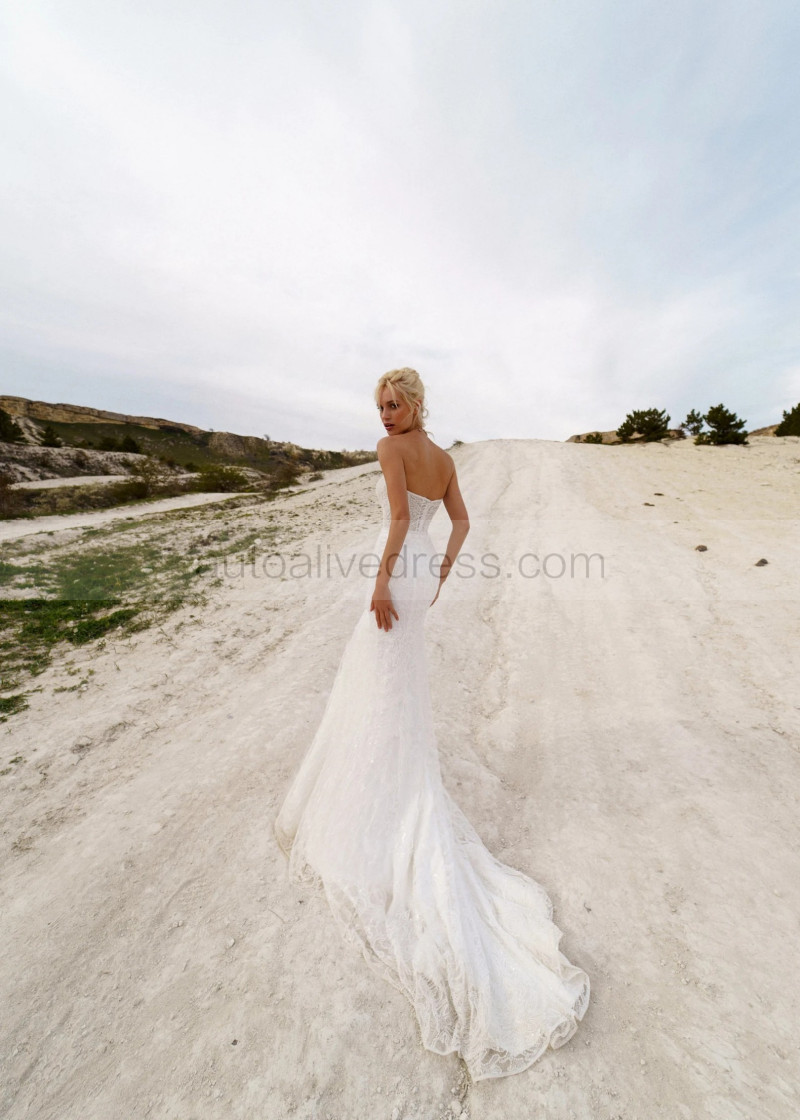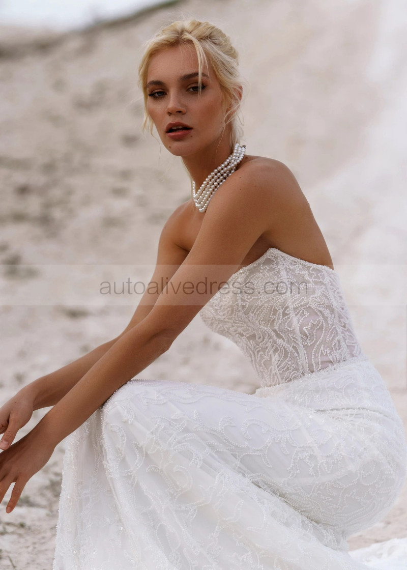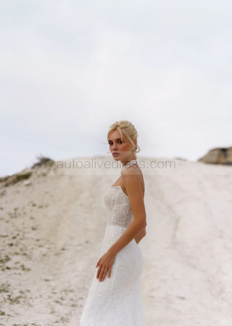 Strapless Beaded White Lace Anniversary Wedding Dress
