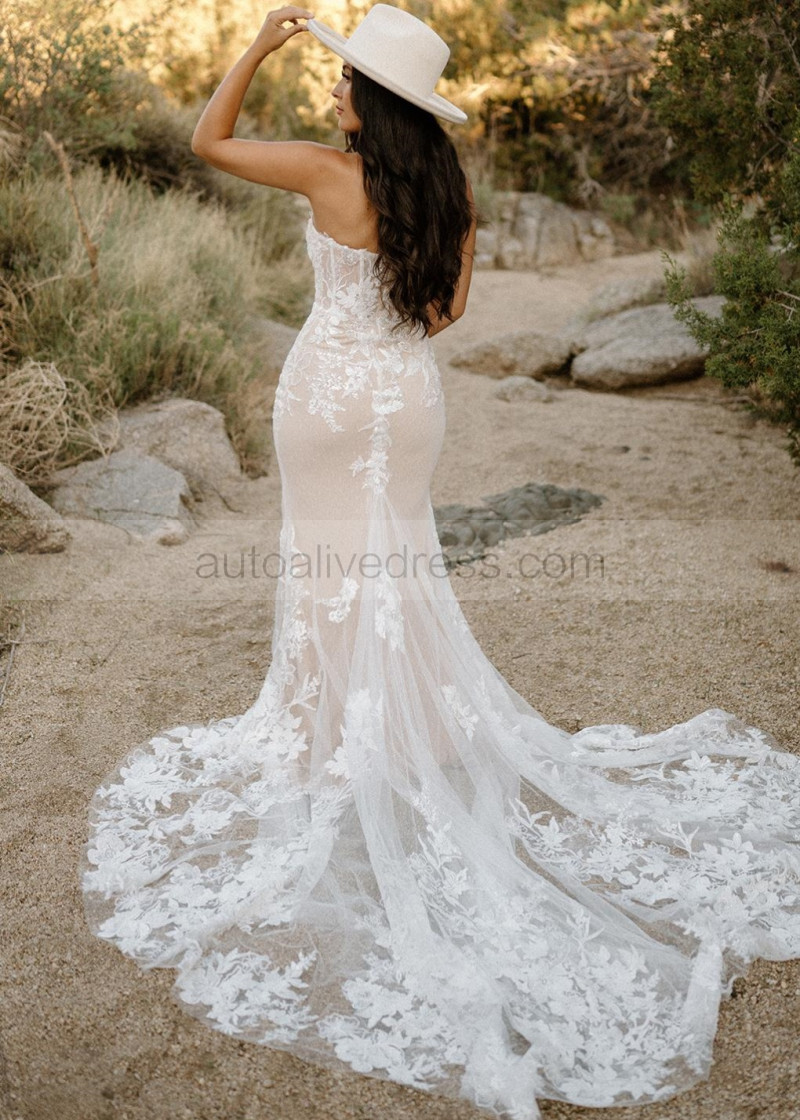 Strapless Ivory Lace Dotted Tulle Dazzling Wedding Dress