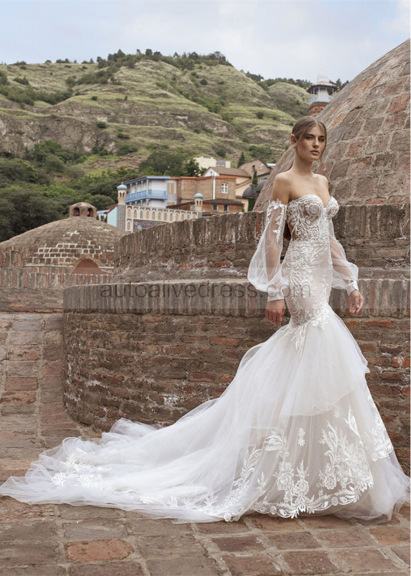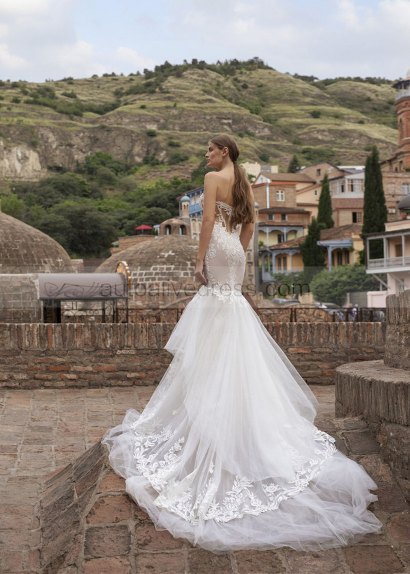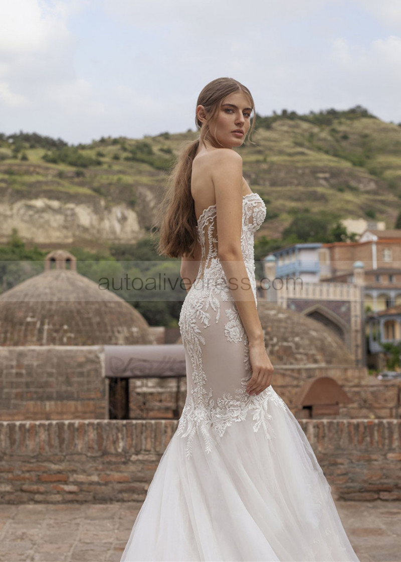 Strapless Ivory Lace Tulle Modern Wedding Dress