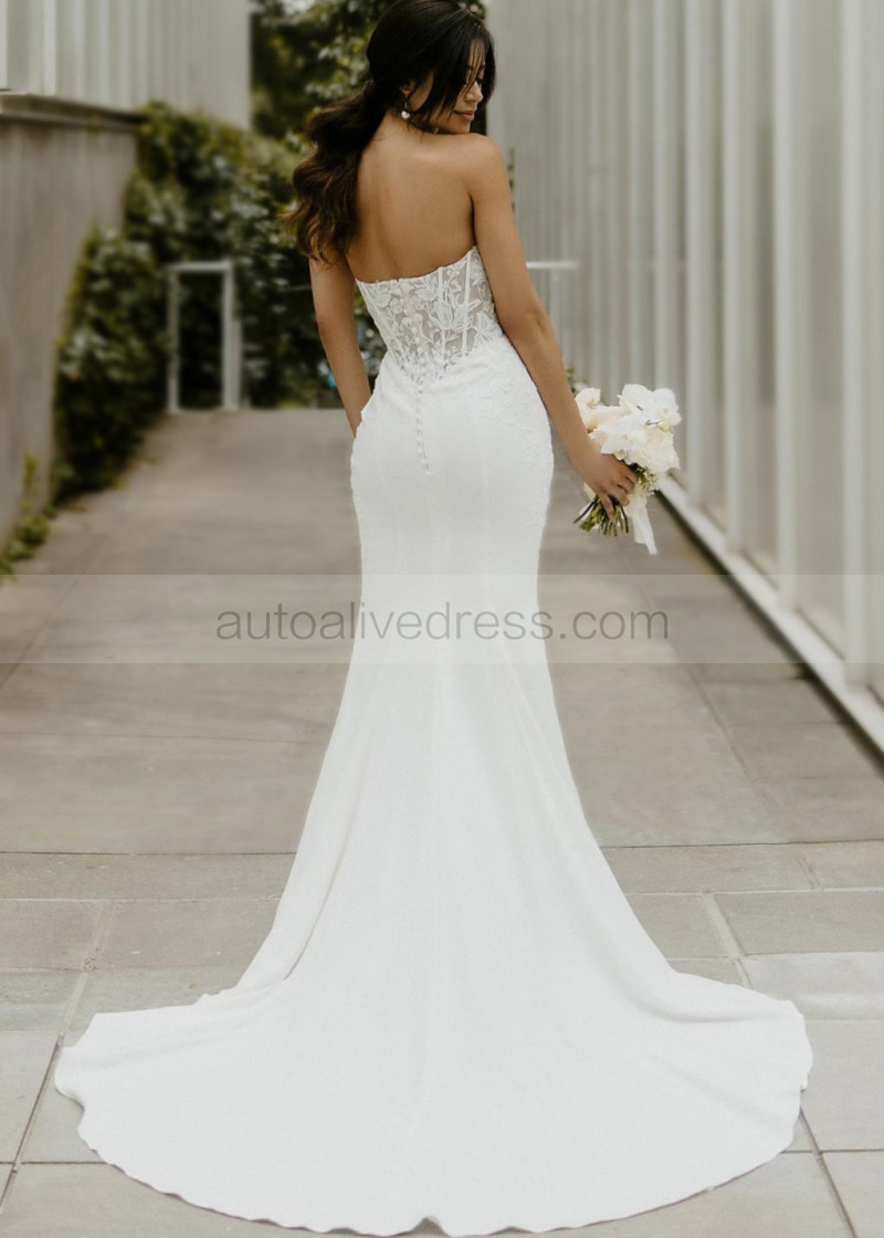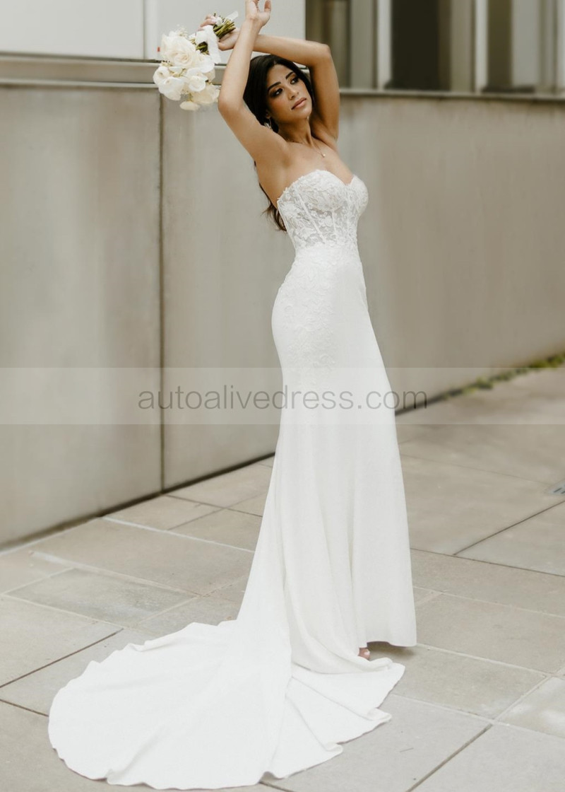 Strapless Sweetheart Neck White Satin Lace Classic Wedding Dress