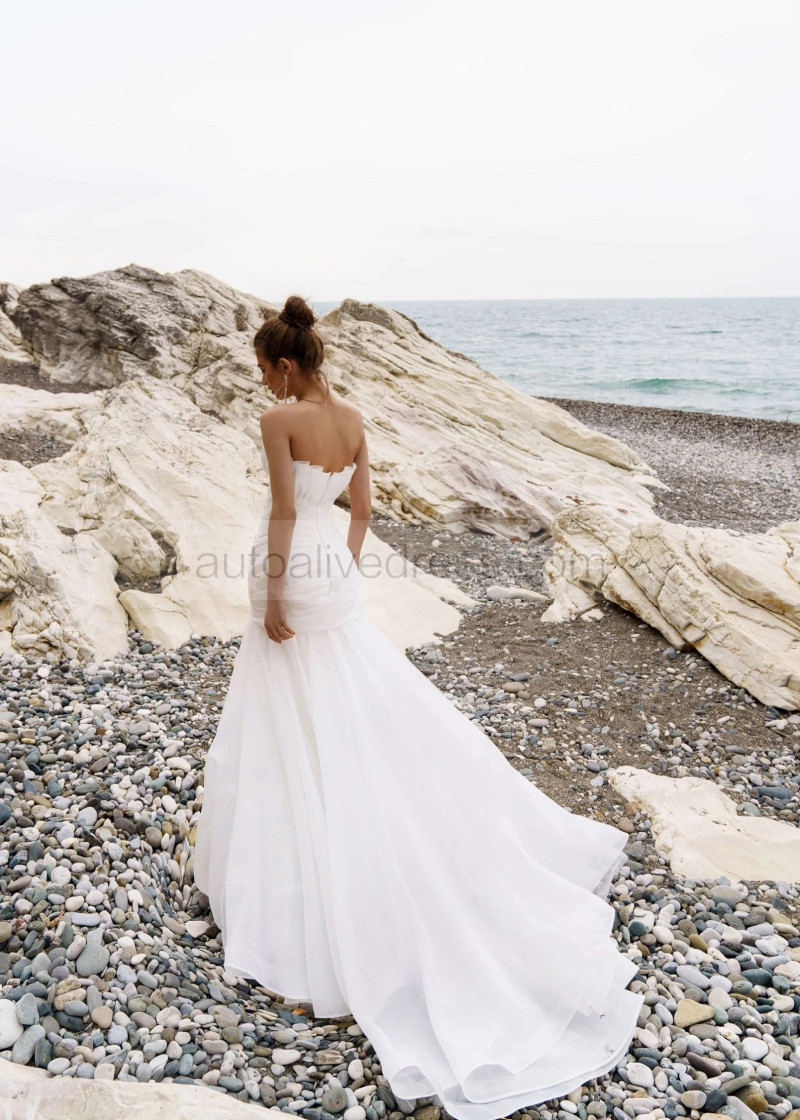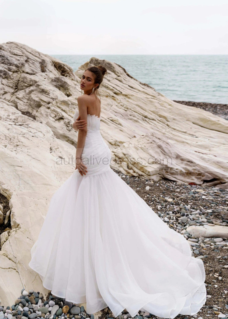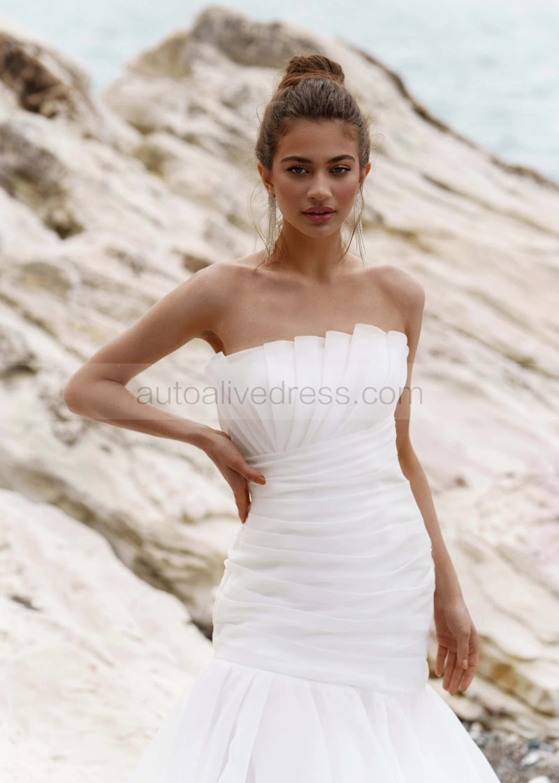 Strapless White Pleated Organza Dreamy Wedding Dress