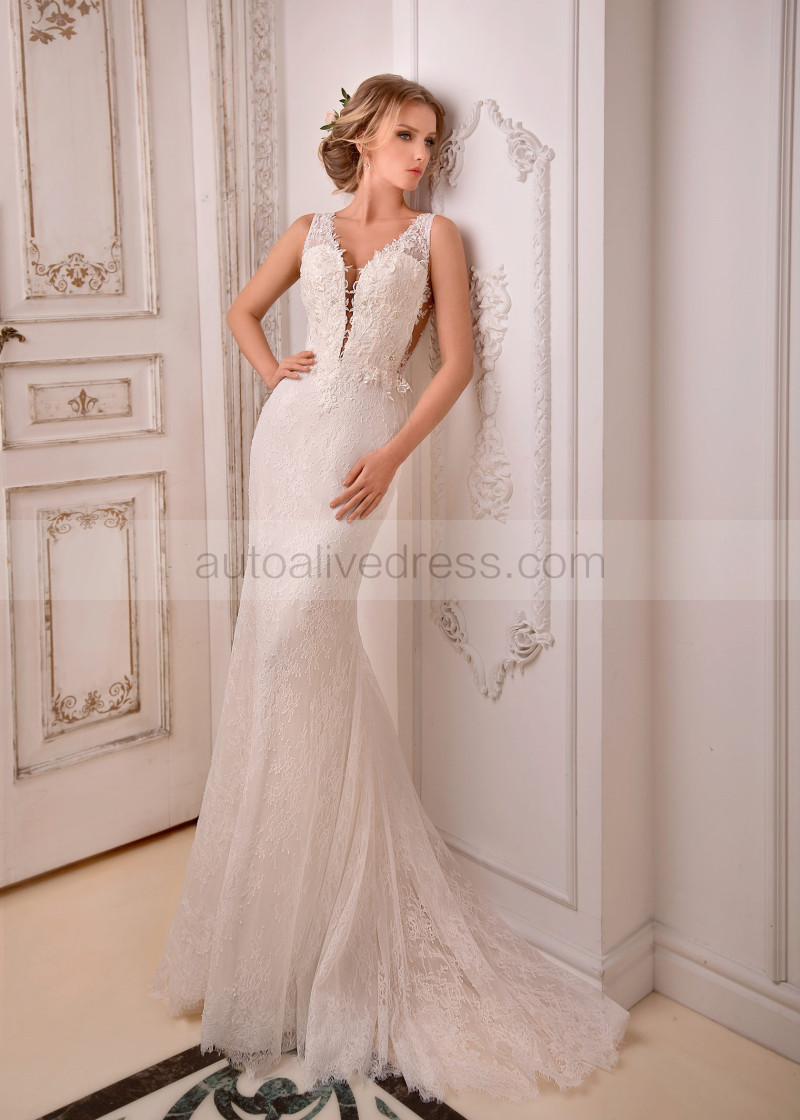 Beaded Ivory Eyelash Lace Tulle Sheer Back Wedding Dress