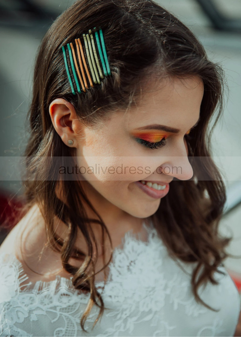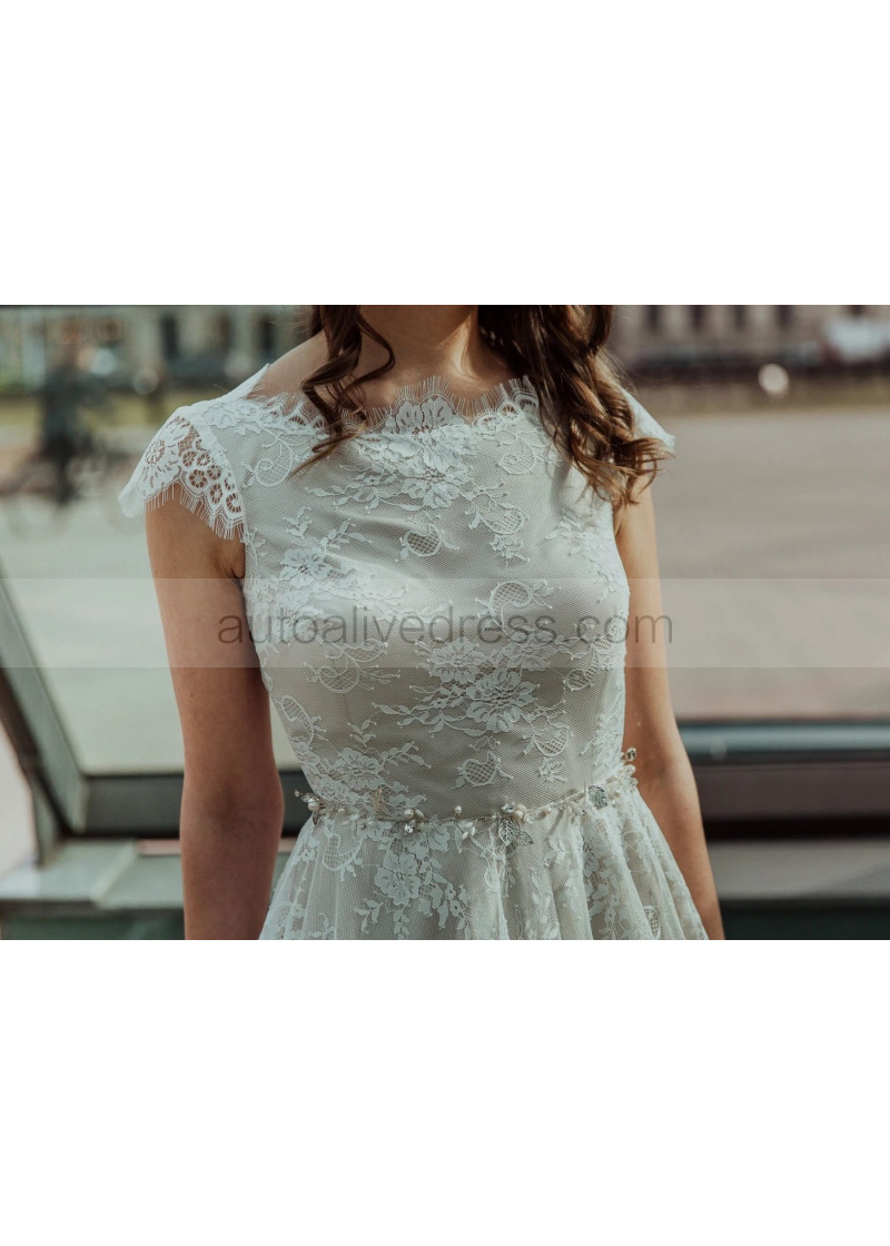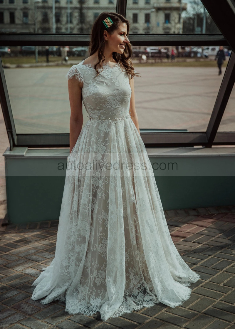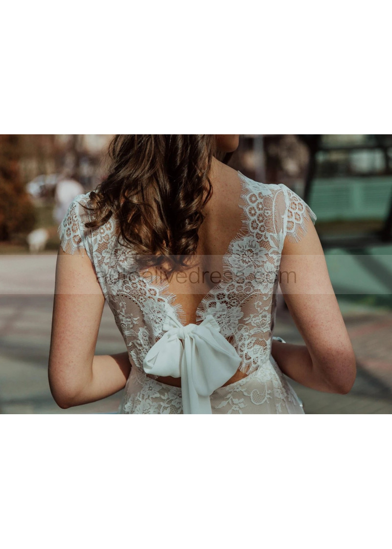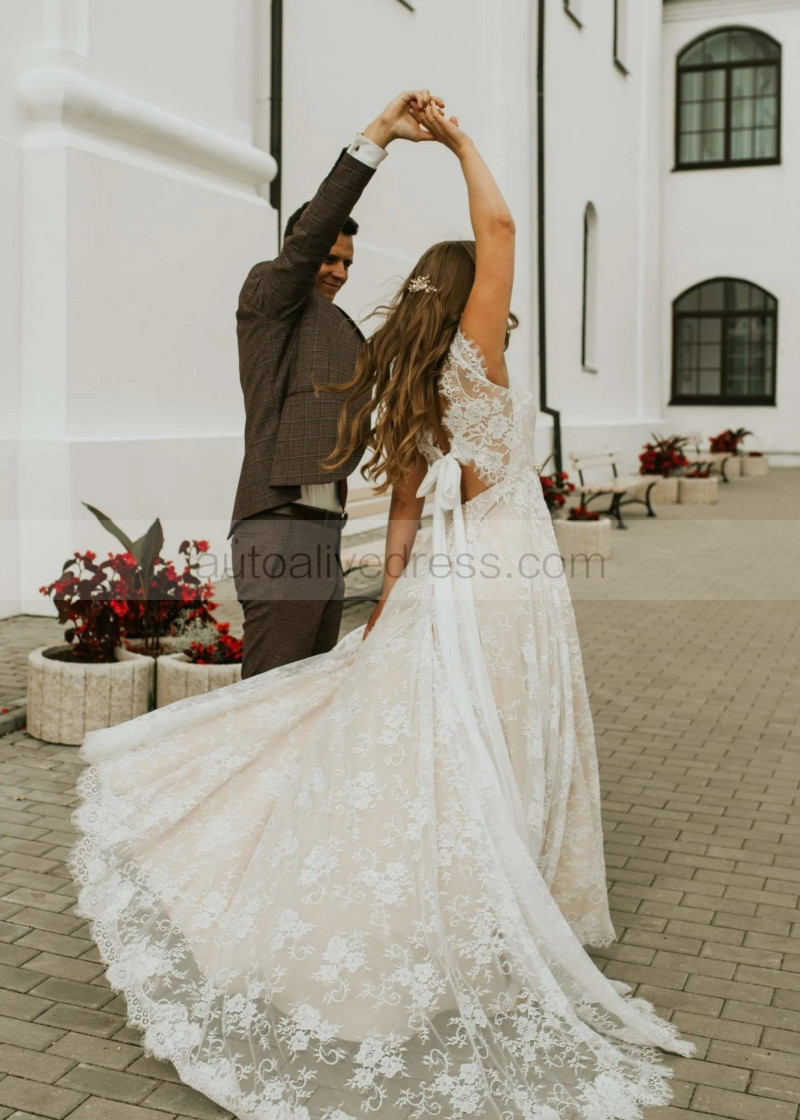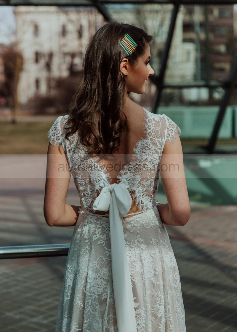 Ivory Eyelash Lace Tie Back Dreamy Wedding Dress