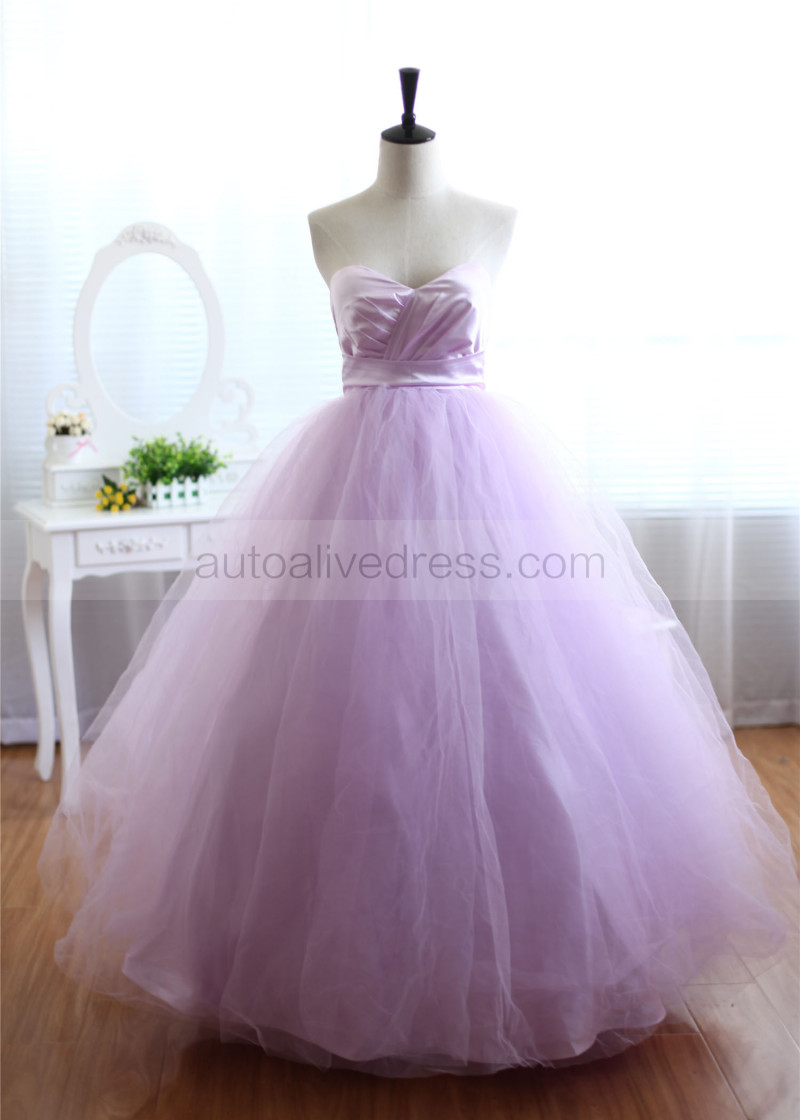 Lavender Satin Tulle Long Wedding Dress