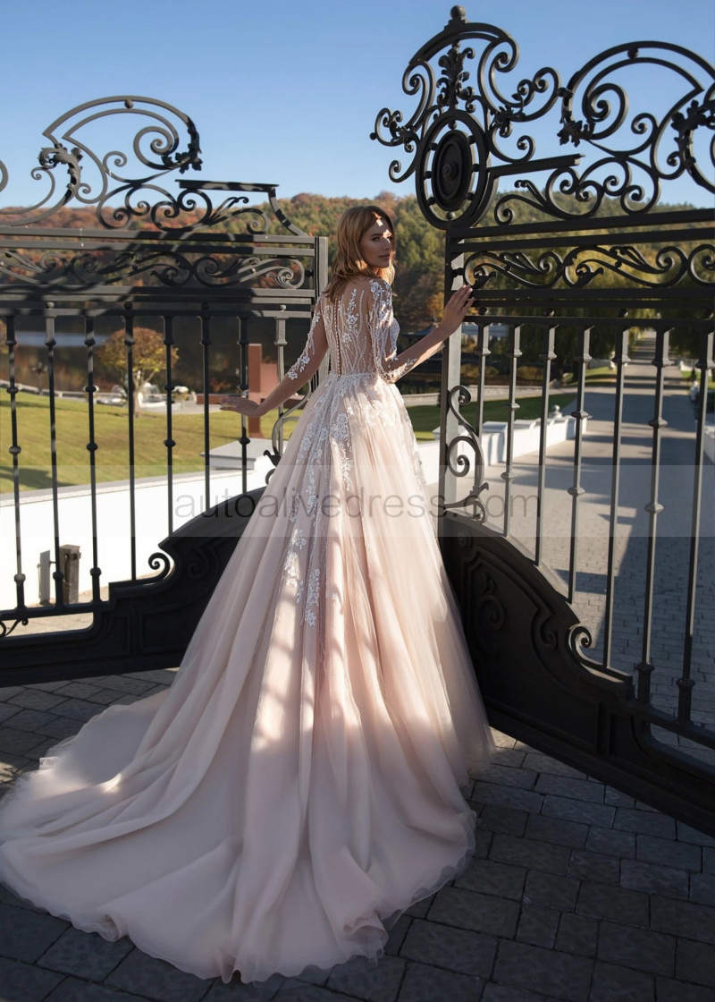 Long Sleeves Beaded Lace Tulle Unique Wedding Dress