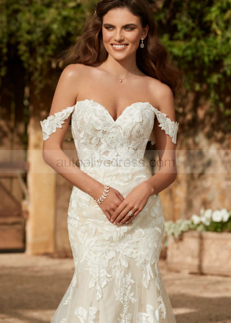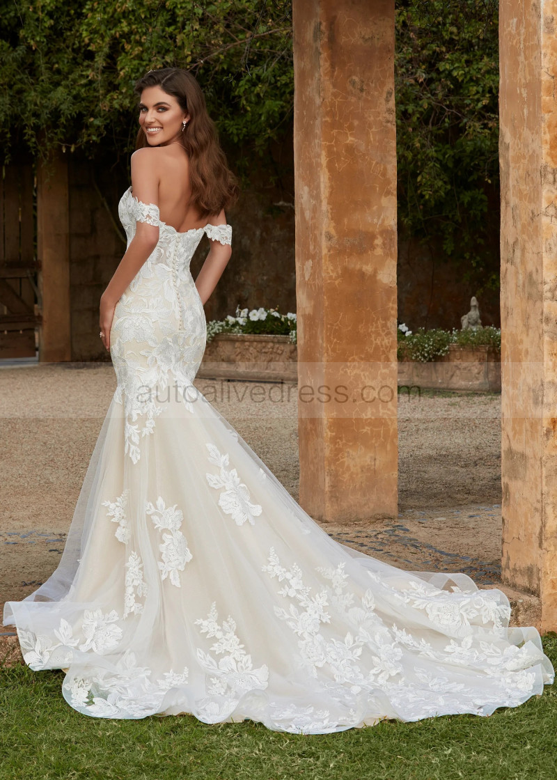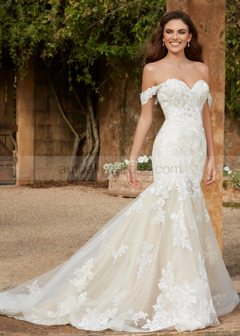 Ivory Lace Tulle Sweet Wedding Dress With Horsehair Trim