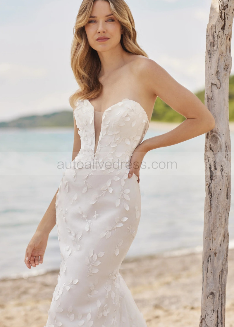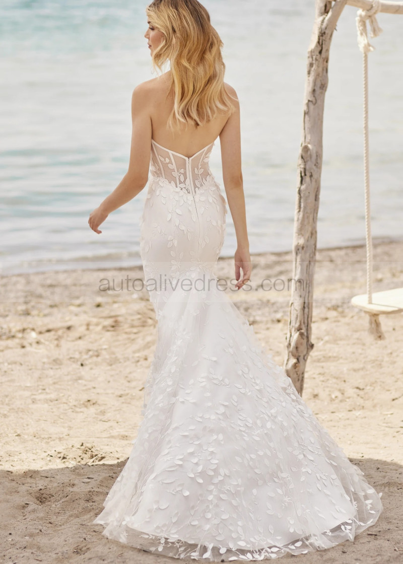 Strapless Ivory Lace Tulle Unique Wedding Dress