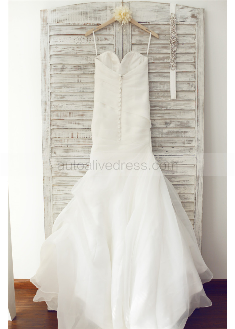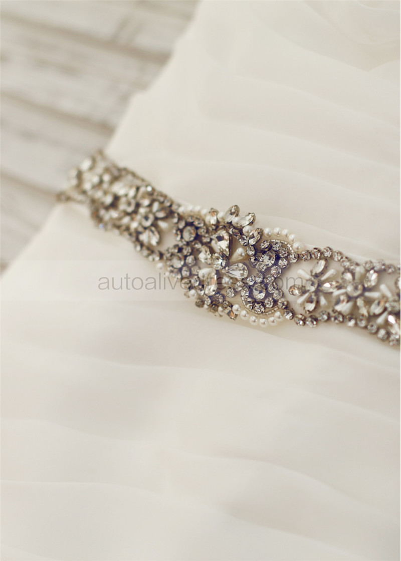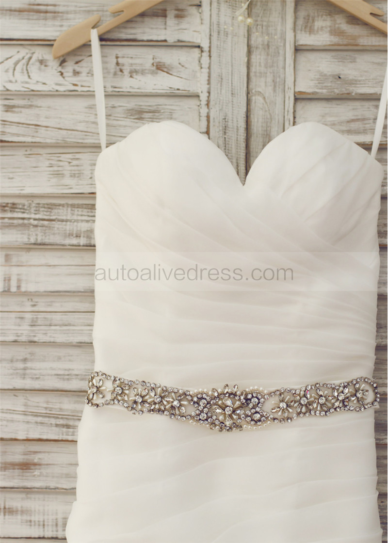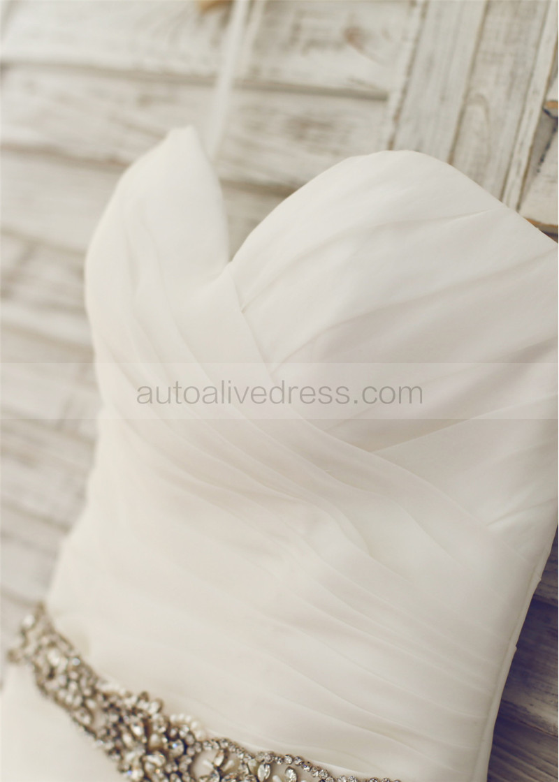 Strapless Ivory Organza Stunning Wedding Dress With Beaded Belt