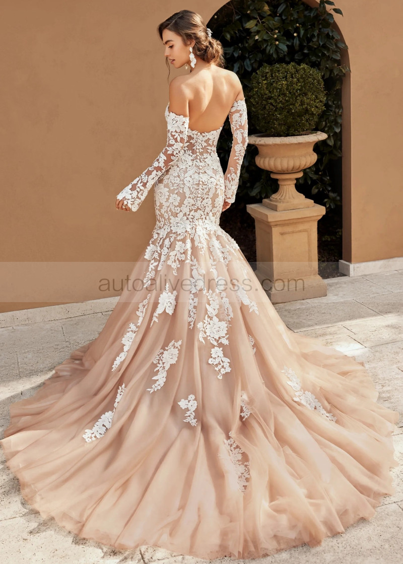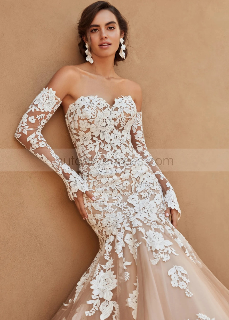 Strapless Lace Tulle Wedding Dress With Removable Sleeves