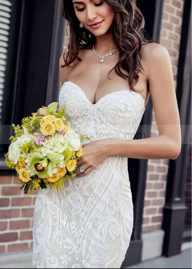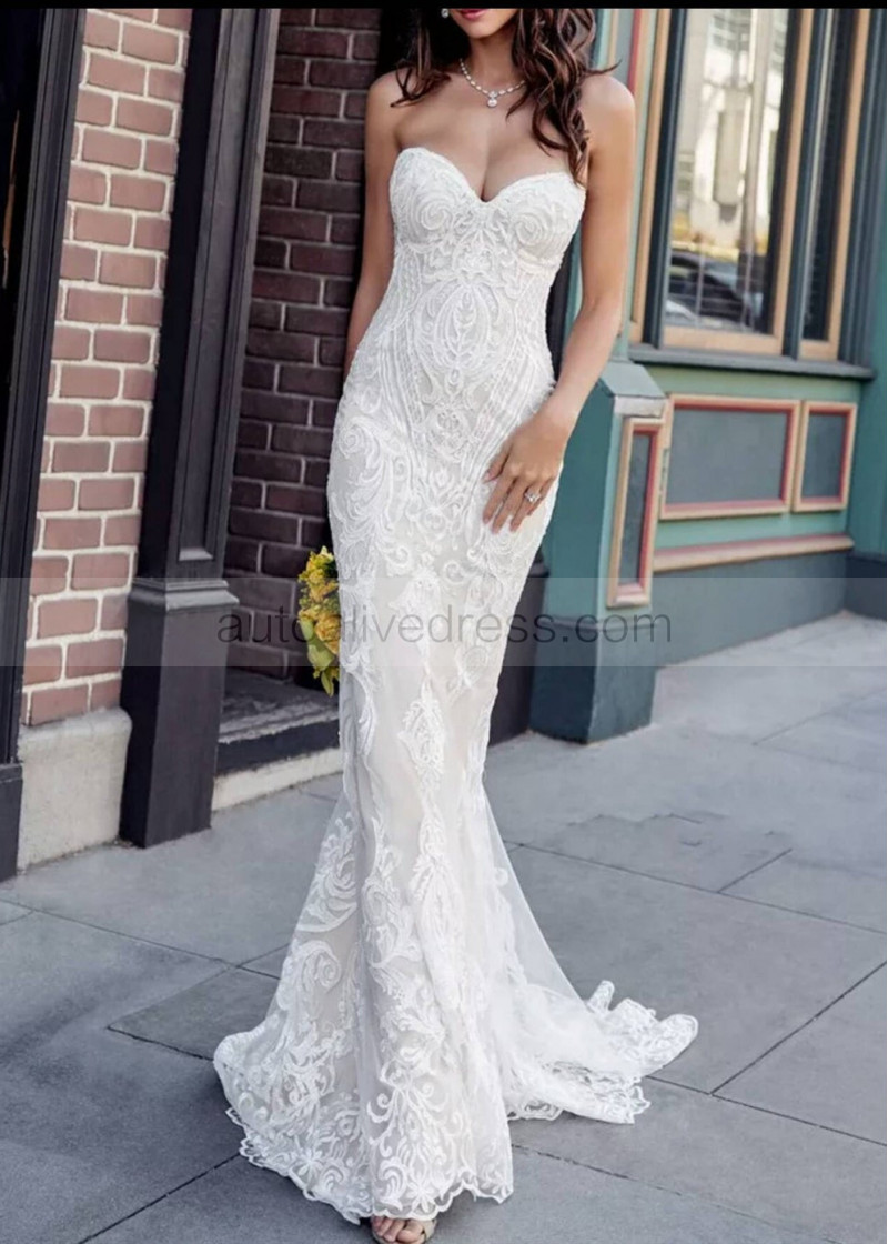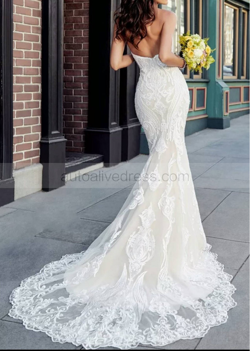 Strapless Sleeveless Ivory Lace Tulle Wedding Dress