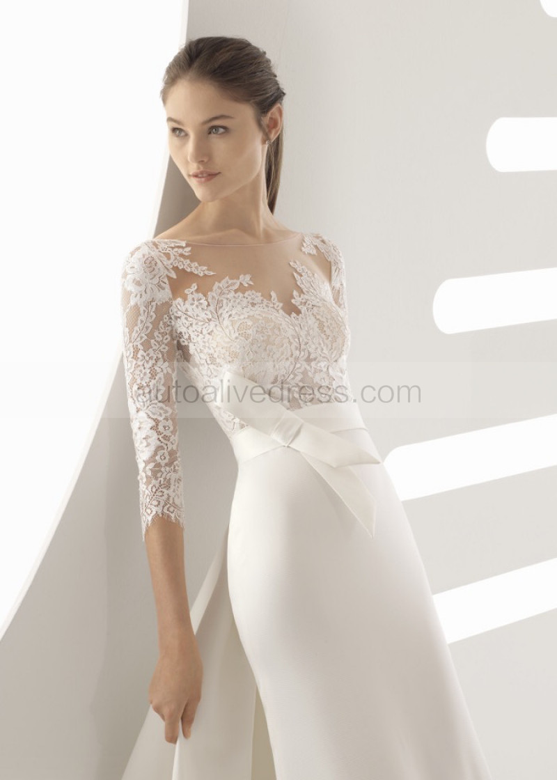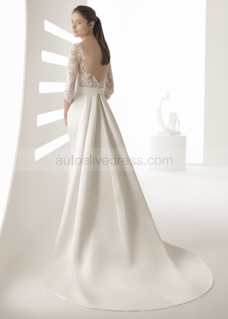 Three Quarter Sleeve Ivory Lace Satin Wedding Dress