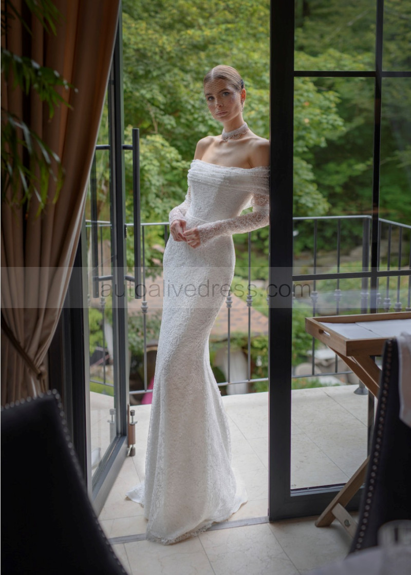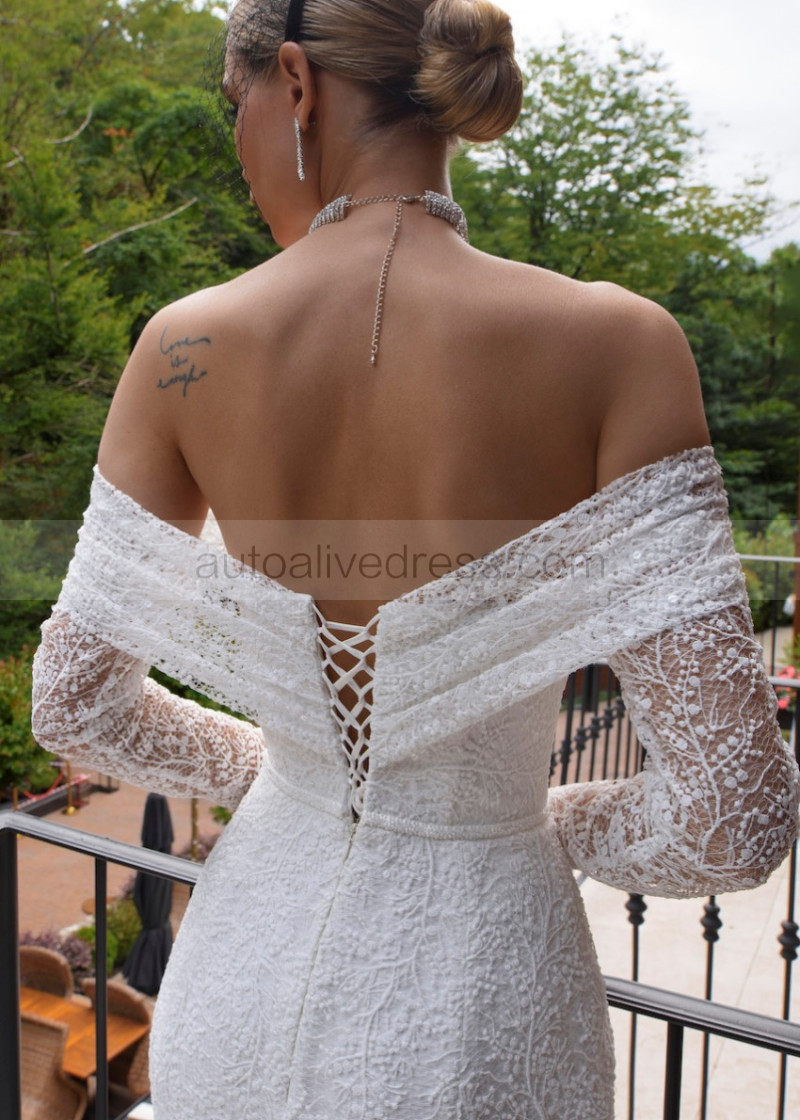 Off Shoulder Ivory Allover Lace Corset Back Sweet Wedding Dress