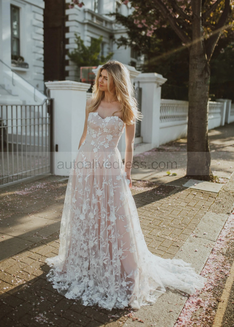 Strapless Sweetheart Neck Ivory Lace Tulle Gorgeous Wedding Dress