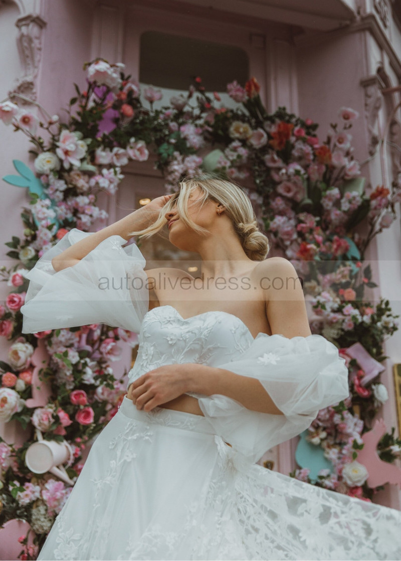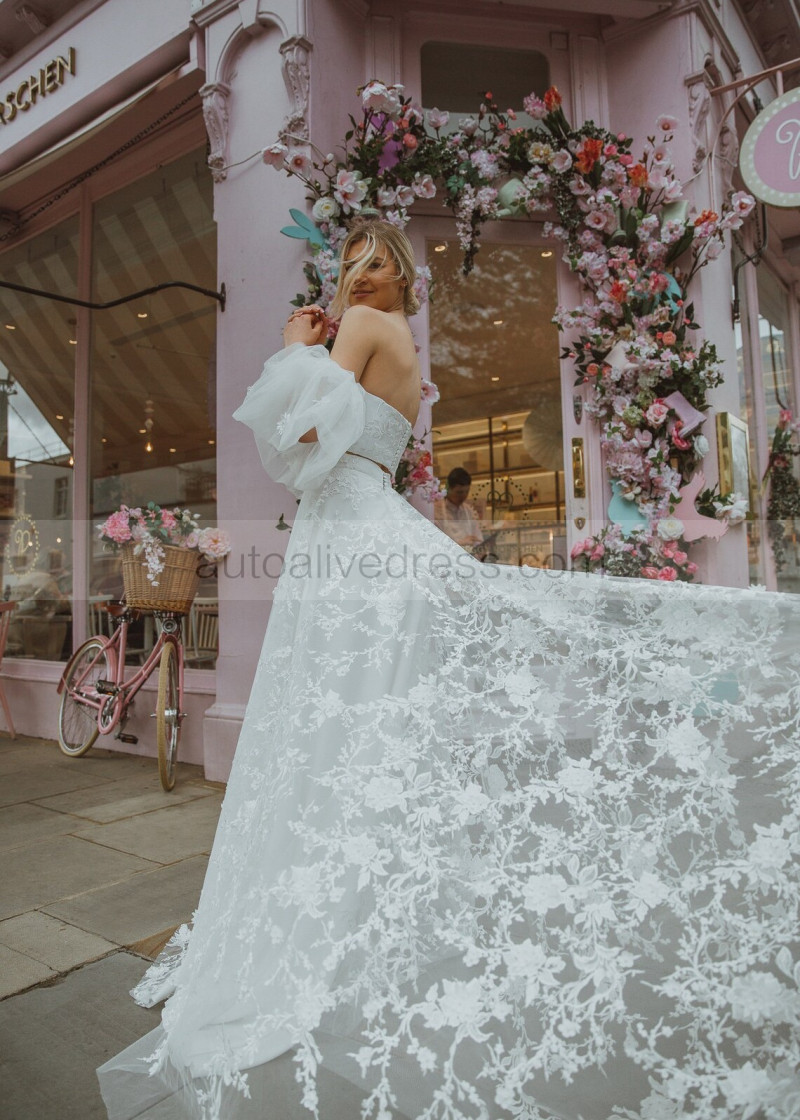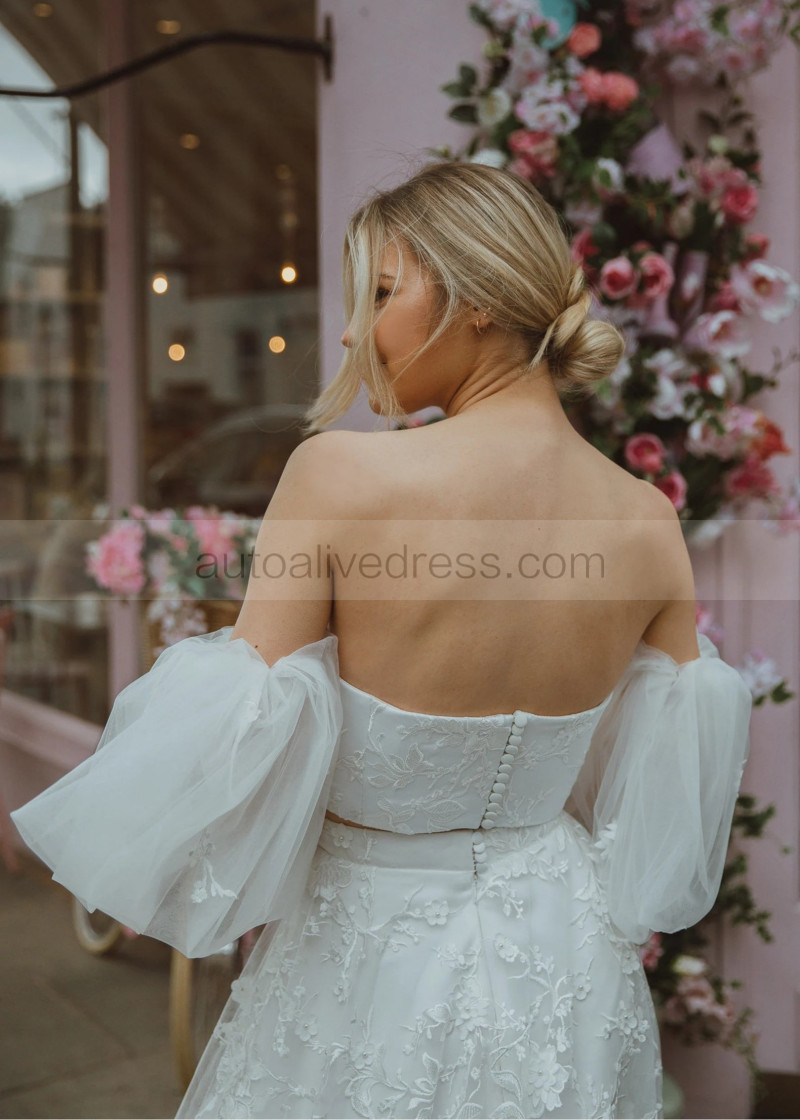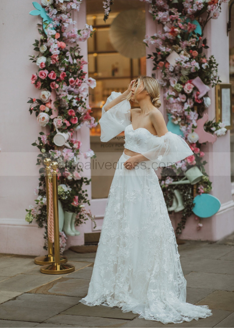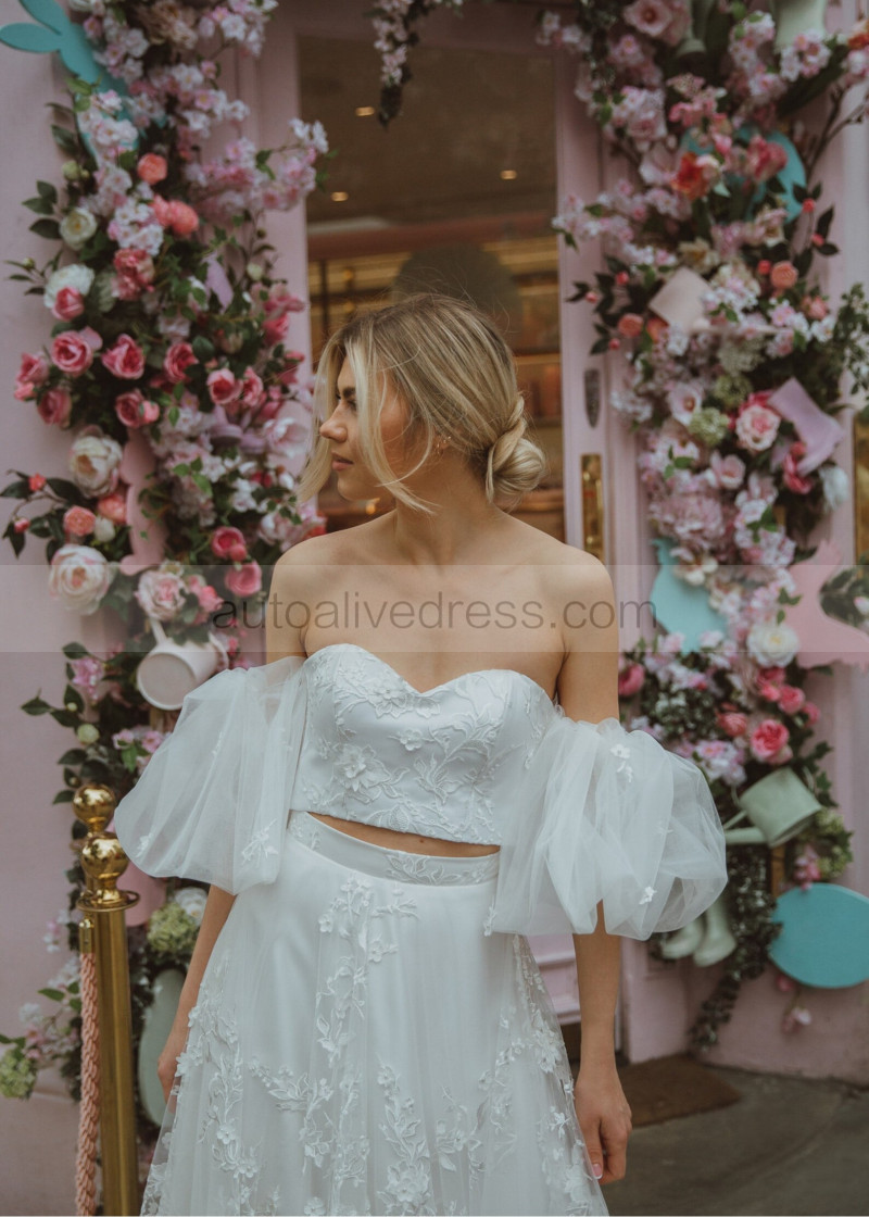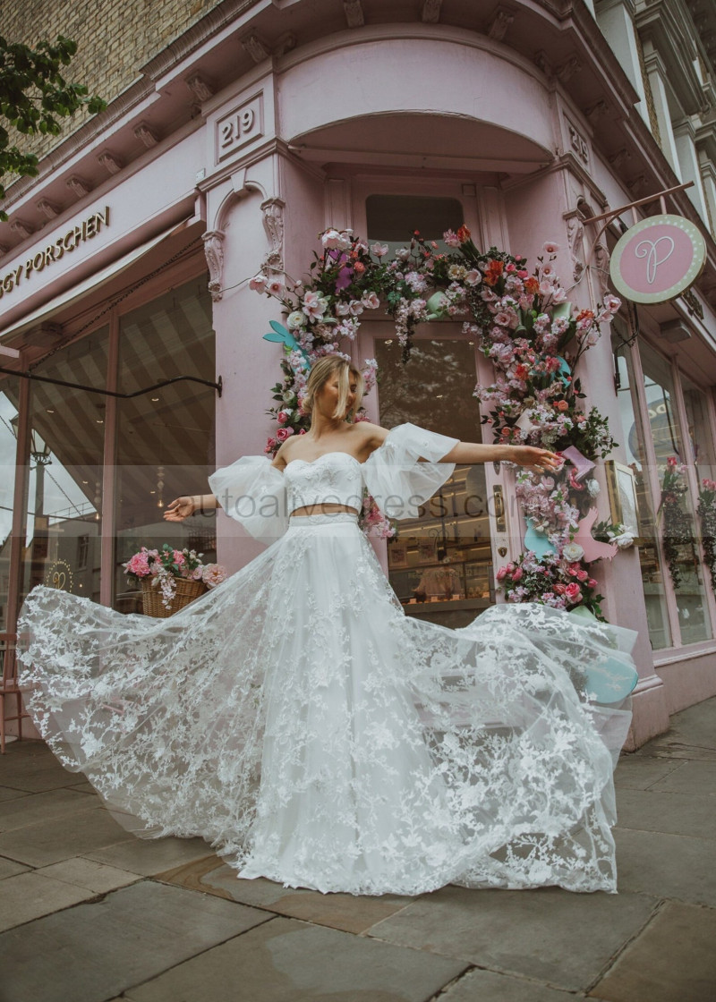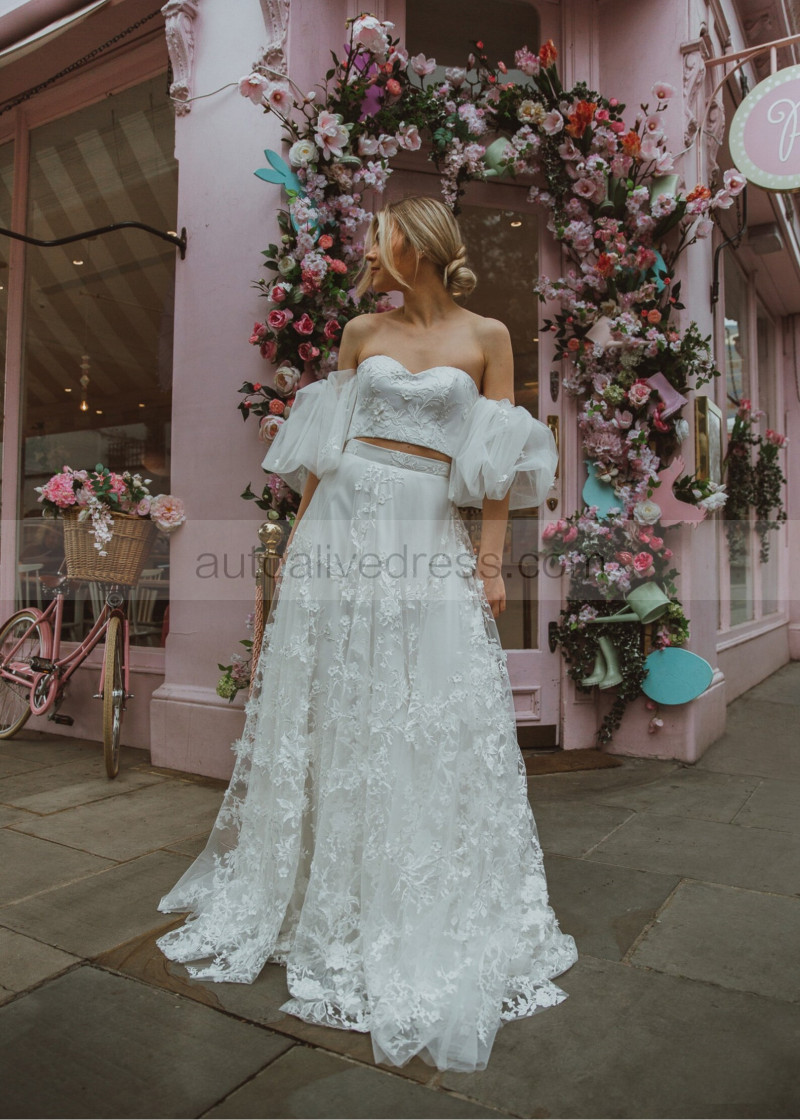 Two Piece Ivory Lace Tulle Floral Wedding Dress